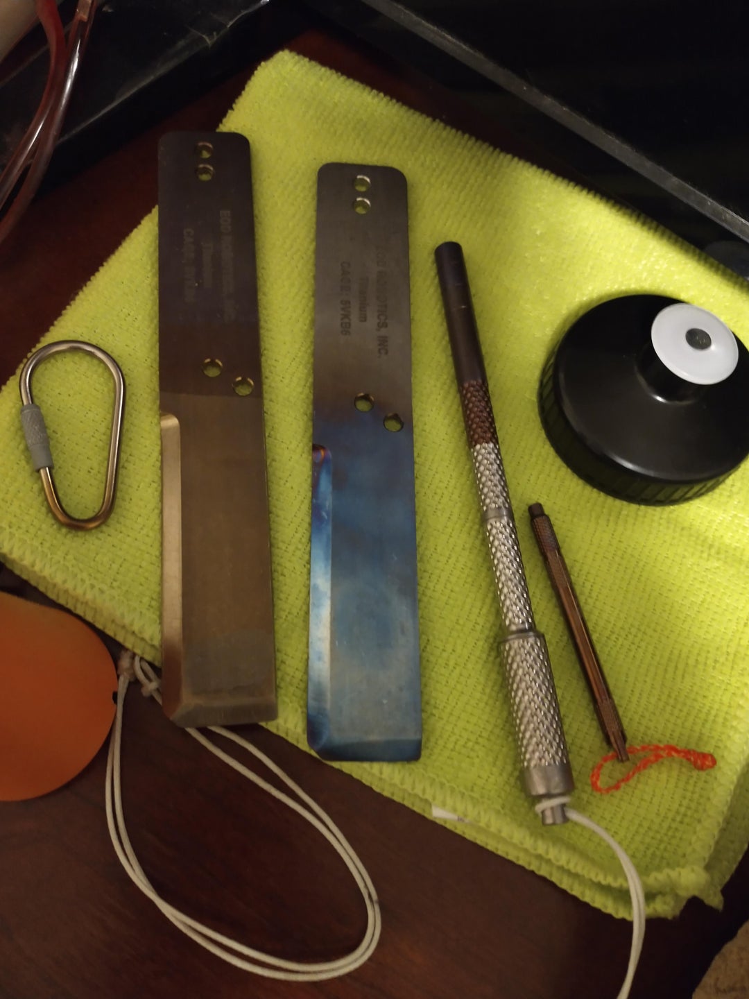 I’ve been grabbing all my titanium stuff and throwing it into baking soda water with some 9 volt batteries and it’s changing cool colors! Also I have a question, one of the pieces had brass on it so I accidentally anodized brass (?) Which I guess you can’t technically do, so what did I make? (Clip in last photo)