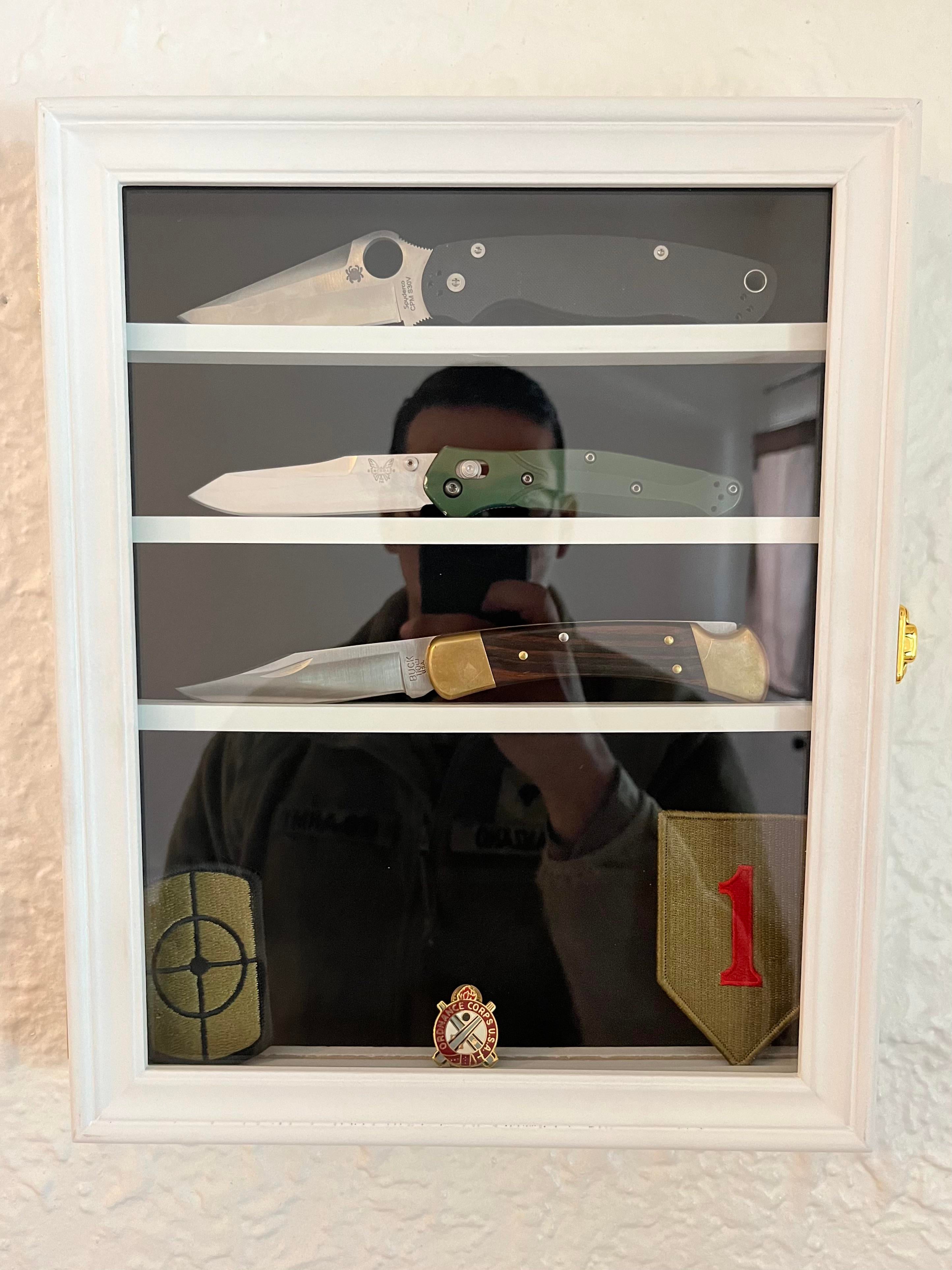 In KNIVES Another gift from the in-laws December 27, 2022 Another gift from the in-lawsby Ok-Interview-3241 KnifeKnives Prev Post EDC Photog Bag Essentials! December 27, 2022 Next Post Any ideas how to prevent the straps on my headlamp from sliding up while still being able to remove it when needed? December 27, 2022 Related Posts NKD January 16, 2026 Rike – Alien 4 January 16, 2026 Benchmade Leuku January 16, 2026 7 Comments Ok-Interview-3241 3 years ago Forgot to be specific that the case was the gift. The_Dootman 3 years ago Curious, do you typically store the knives open, or was it just for the photo?All of my folders are just unceremoniously tossed in and old cigar box. LOLVery nice display case, by the way Alert_Challenge8042 3 years ago Hope you get custody of her parents should you two split. lurker-1969 3 years ago I’ve got those 3 knives too. bridgethegap007 3 years ago You got a man inside a box taking photos of you.. 1VNIKV111 3 years ago I’m fairly sure that your inlaws were on reddit asking if the bottom knife would make a good gift not too long ago. upvote-platypus 3 years ago Is that a replica 1st infantry division patch or genuine?Write A CommentYou must be logged in to post a comment.