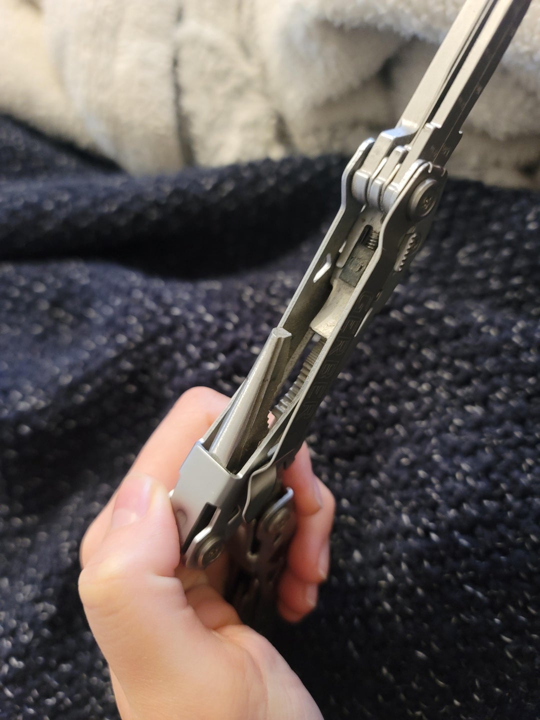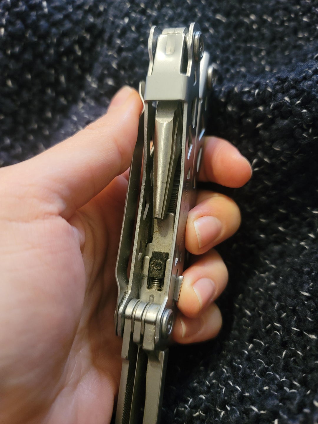Seems like a safer (no twisting) way is to remove the screw on the plier side and reassemble