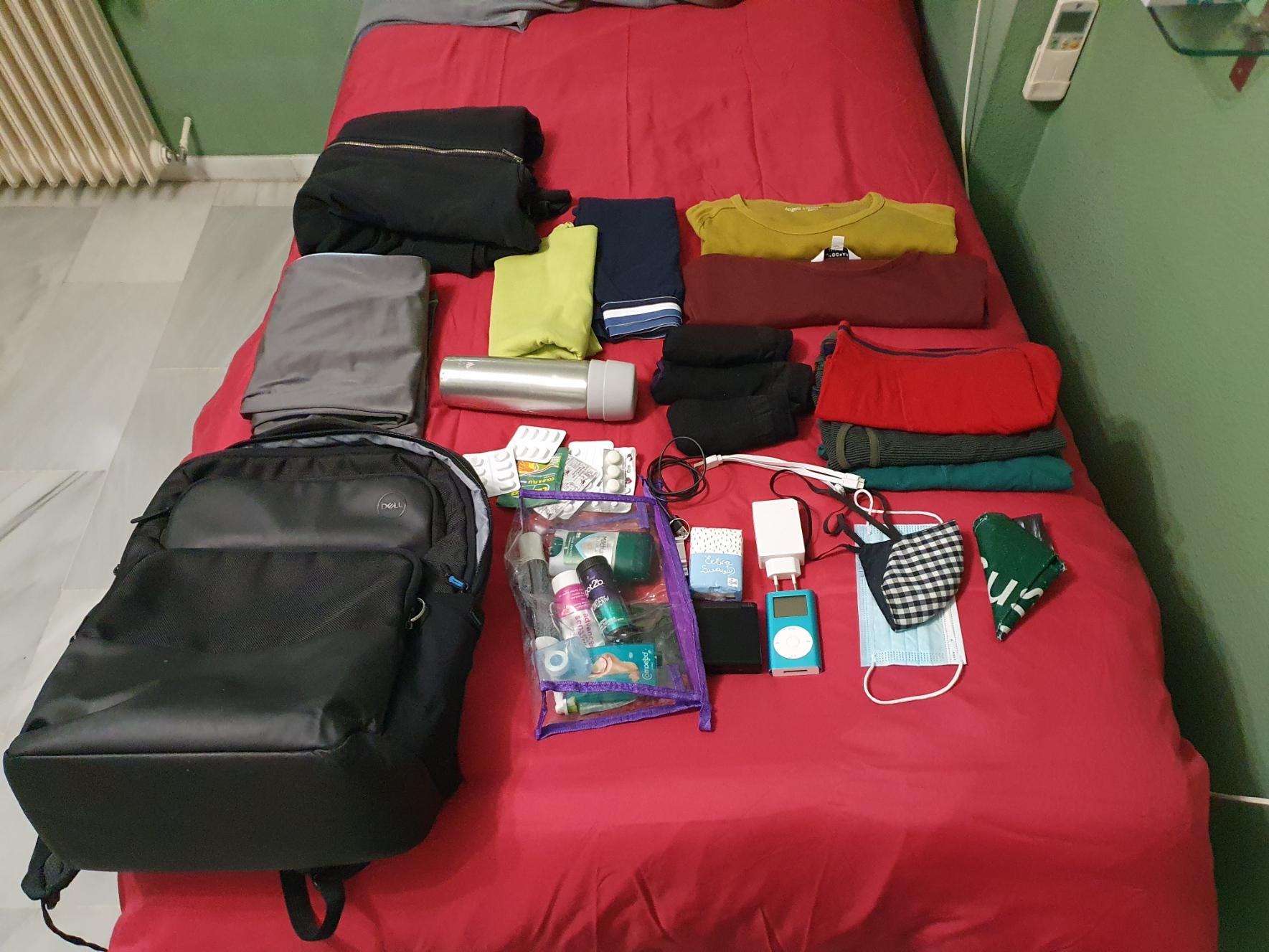 katorce 3 years ago This was my bag for a weekend away a couple of weeks ago.* Backpack * Toiletries pack * Toothbrush and toothpaste * Anti-perspirant * Blisters * Some medicines, mostly paracetamol, ibuprofen * Nintendo DS * Ipod mini * Face masks * Plastic bag for dirty clothes * bottle opener * tissues * charger with USB-C cable, and a cheap 1-3 cable * 3x socks * 3x underwear * Water bottle * 2x t-shirts * 1x sweatpants * 1x summer pajama * 1x sweater * Not in the picture: My phone