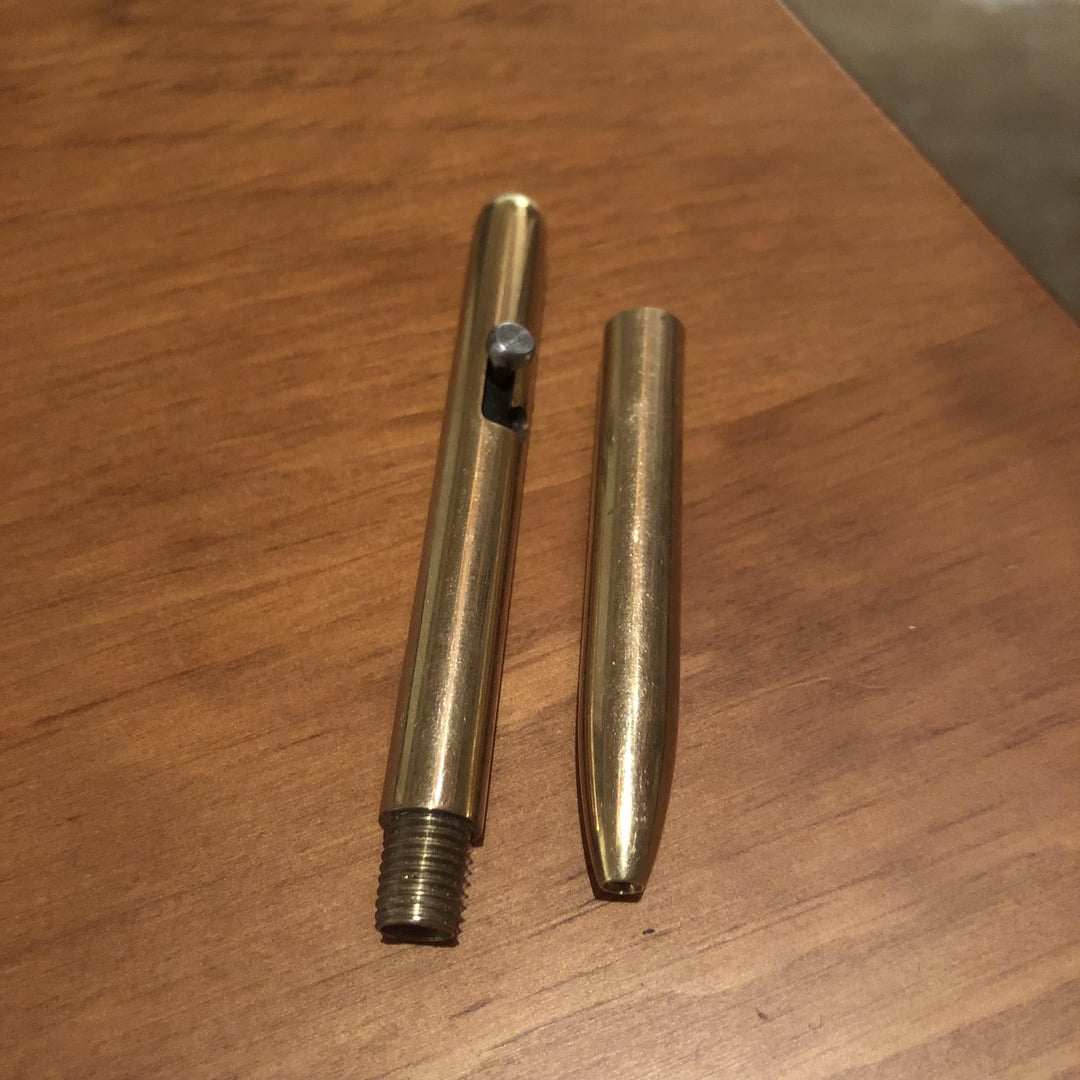 I am a highschool student and am currently taking a manufacturing tech course. I spent near forty hours and machined this brass bolt action pen for my fathers Christmas gift as we share a love for gear/edc.