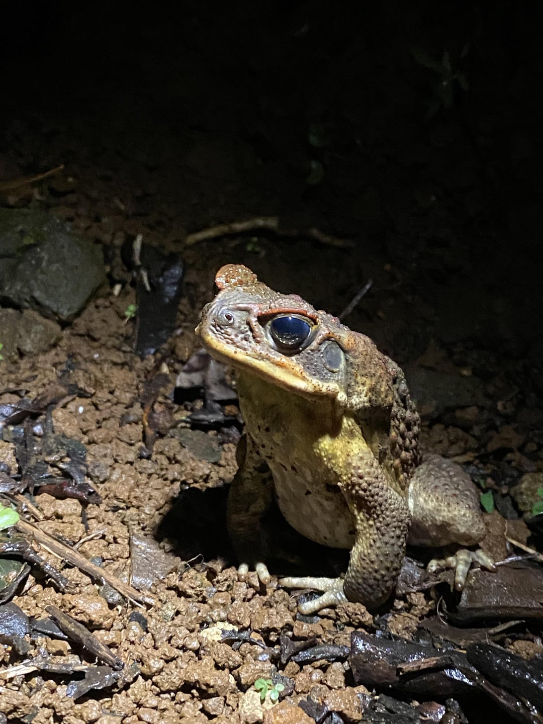 I think the frog is actually a cane toad bro. Fun fact: Some dogs learn to lick them to get high.