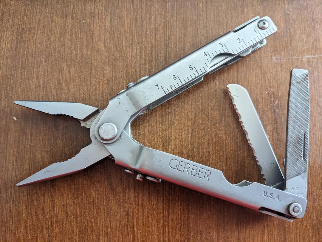 Picked up a lot of 5 multitools on eBay, 3 were generic junk, but the stars were a Gerber Suspension and this Gerber. From googling the patent numbers, am I right in guessing this is a 80s MP500?