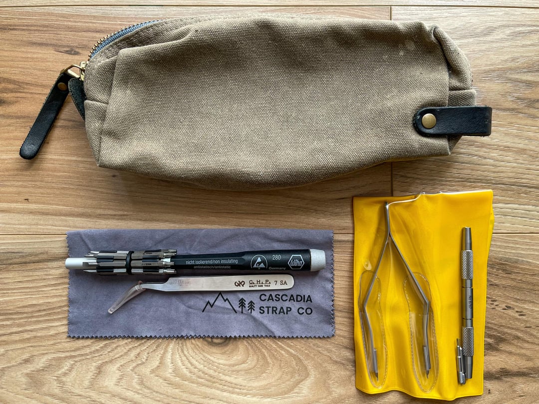 * Wiha 75093 Phillips and Torx Micro Bit Set * Bergeon Springbar Tweezers and Tool * Microfiber towel