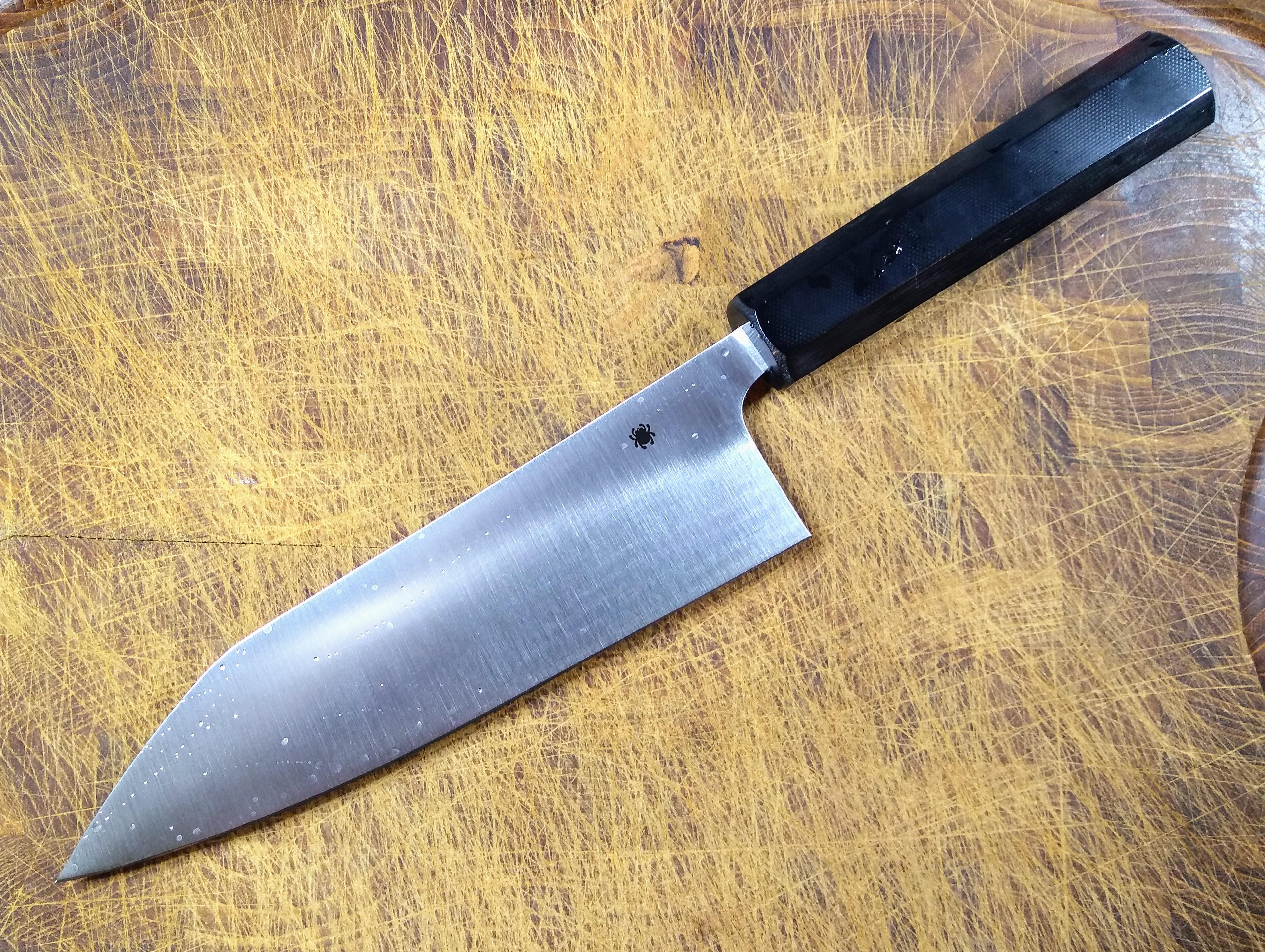 If a tree falls in a forest and there’s no one there to hear it, does it make a sound? If a Spyderco doesn’t have a hole, is it still a Spyderco? Asking the big questions here. (NKD: the medium sized version of the cheaper plain G10/BDN1 Spyderco Murray Carter production line. I’m used to euro style chef knives and this thing is so thin behind the edge that cutting up some carrots felt like using a lightsaber)