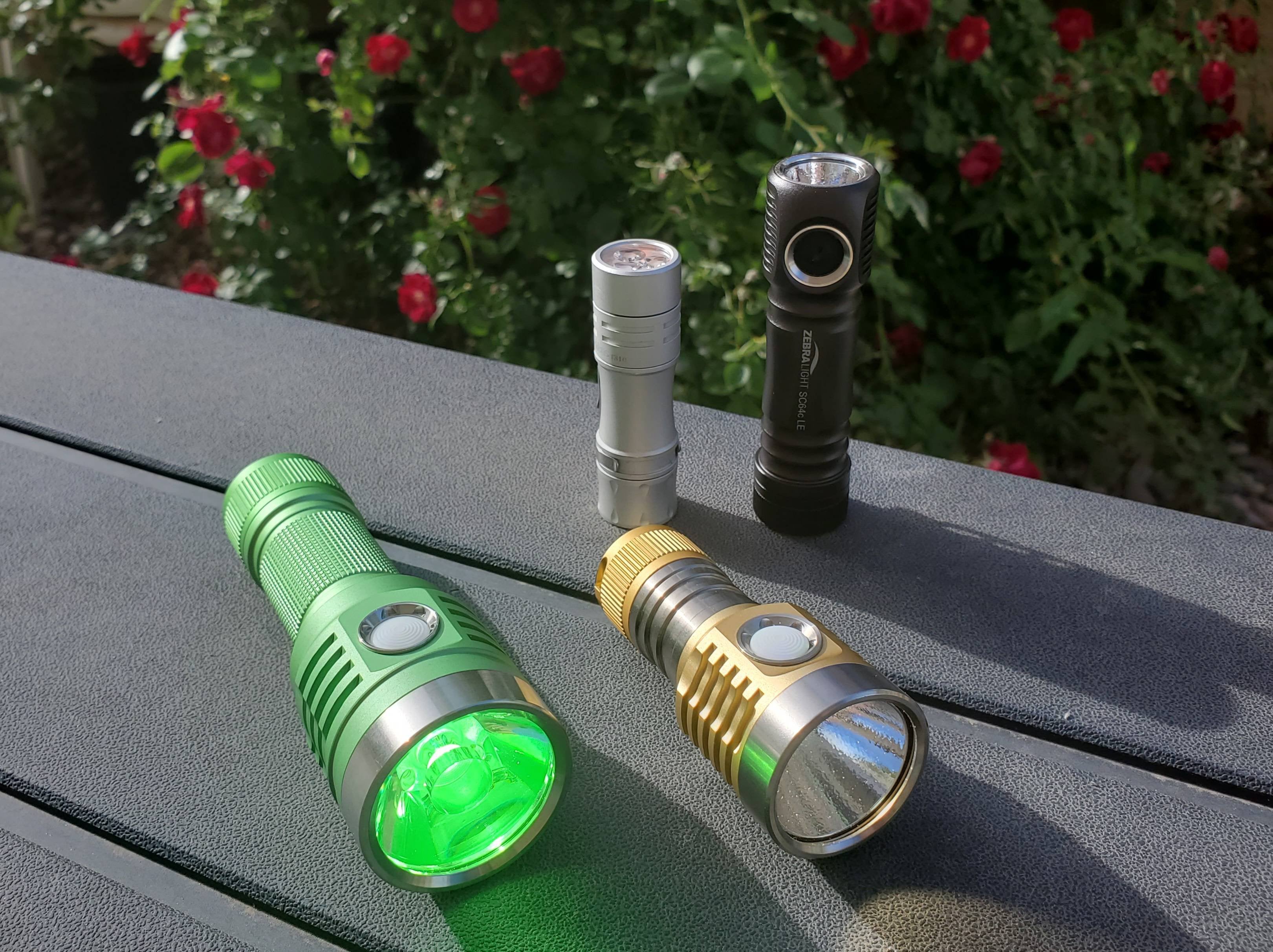 Dm11 – green body, w2 emitter and switch backlight. The new less toothy body is ok, if a bit more boring looking. Funky color more than compensates. The pale green light is interesting, will report later how I feel about it. Host is balanced well, but the middle finger is right on the bottom of the head which is a bit uncomfortable. The k9.3 handles a bit better, and the dm1.12 better than that. I tend to prefer tir over reflector, so this is maybe my new default rec to newbies over the d1. As