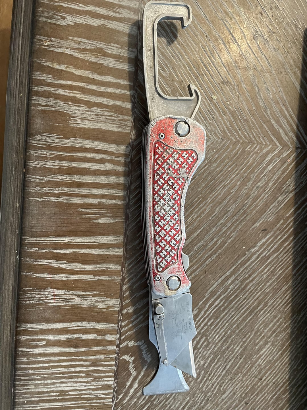 cheesiologist 3 years ago Husky Multi Function Folding Knife. Used to be in the painters section at Home Depot.Appears to be discontinued.