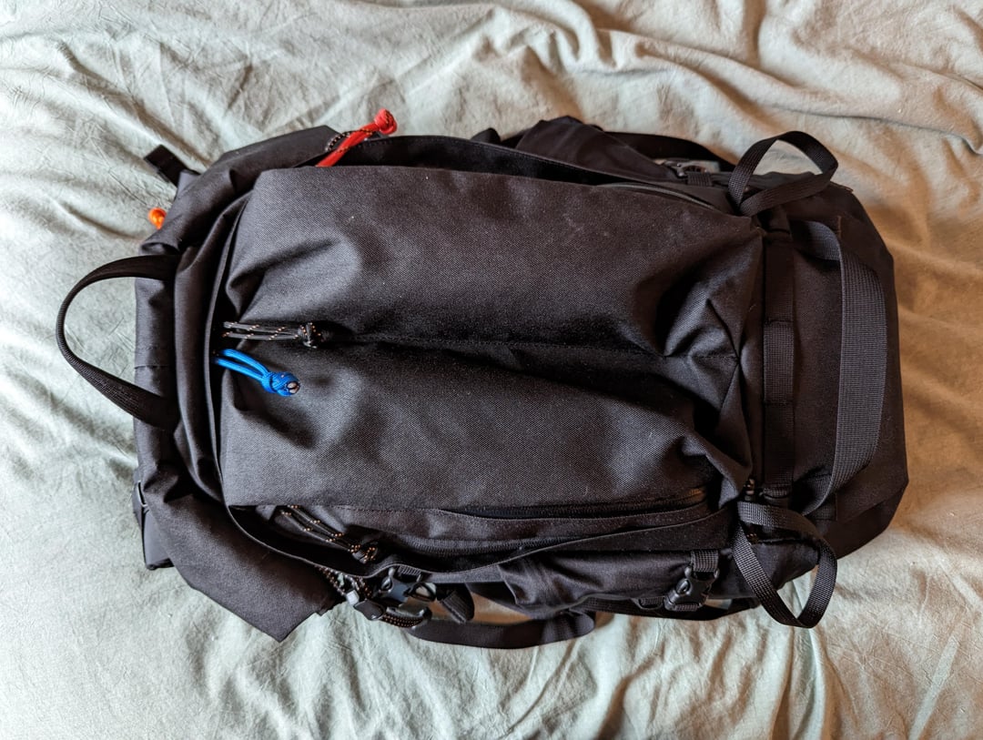 I attached another carry handle at the bottom to the daisy chain, and also swapped out the all black zipper pulls for a colored system so I could tell which zipper I was grabbing from a top-down viewpoint/in dim lighting. I was also able build out a boo-boo pouch with an Alpaka Pencil Case Pro that fits perfectly in the sausage pocket with the red zipper.