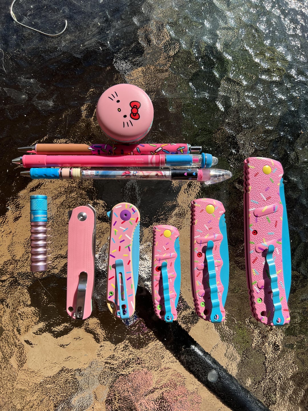 pensHAWAII 3 years ago -Switch (Custom shell and buttons. SkullnCo grips)-Shiv ballpoint penmod-Akira002 Ballpoint penmod-おばけ Obake Pen mod-Lumintop-Boker Dessert Warriors-Civivi elementum-Kizer Latt Vind (scale swap)-Hello kitty lip balm (gift from my little girl)-Italian Leather wallet-Zippo (custom)-Mofusand coin purse(For my yen. Soo many yen)-SOBRAINE
