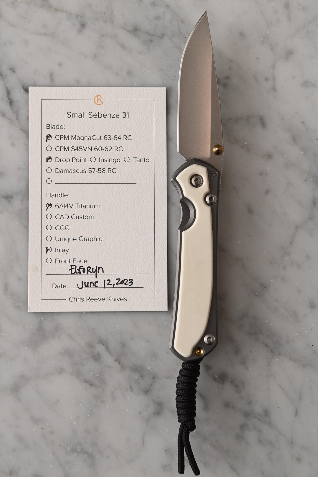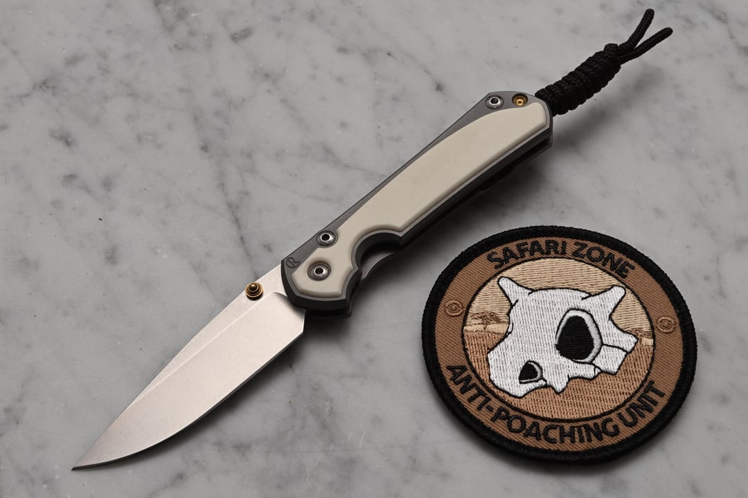 Hi Knife friends. I FOMO’d on this DLT exclusive last Thursday. Released on Wednesday 7/26 and wanted the Large. Slept on it and next afternoon were all gone. Smalls were in stock so I bought one. Checked Friday morning and smalls were all gone too. I thought the anti-poaching patch fit well with this manufactured artificial ivory as no animals were harmed or poached making it. I’m also too poor to afford a Sebenza 21 with Mammoth Ivory so this will do. I wouldn’t use the mammoth ivory anyways for fear of breaking or discoloring a limited quantity of natural material whereas if this handle cracks or breaks more can be manufactured. Last pic is my best attempt at showing the shreger lines. Thanks for looking and I hope you get all the knives you want.