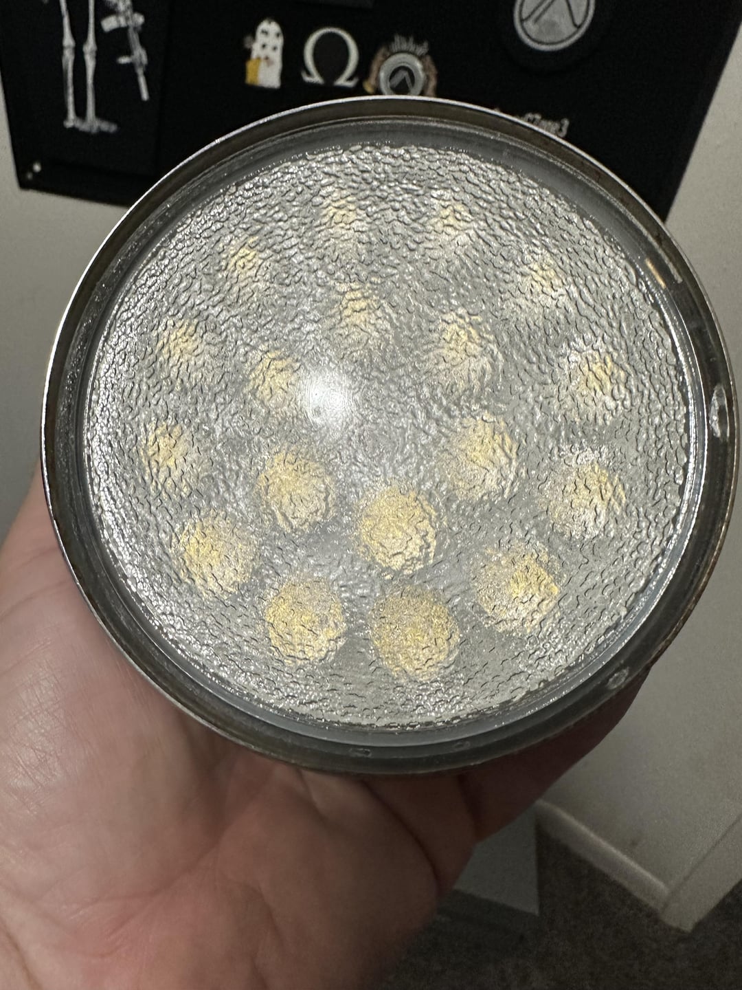 Got this probably 15 years ago planning to mod it but she got packed in a box and forgotten about. Dig it out the other day and had some parts laying around, she turned out real nice. Not sure what the oem lumens were but specs say 2200 now. š still appears vintage but packs a punch. Two 3pk 18650s avg 12.2v, led par36 bulb. 1950s switch appears more robust than anything modern I found. New truck light š¤š½ originally I planned to use a Dewalt 20v pack because so durable and easy to charge, but Iād have to buck it down to 12v and extra parts. The battery pack does fit but just barely. Would need to sand some corners off the plastic case to get it in and out easily.