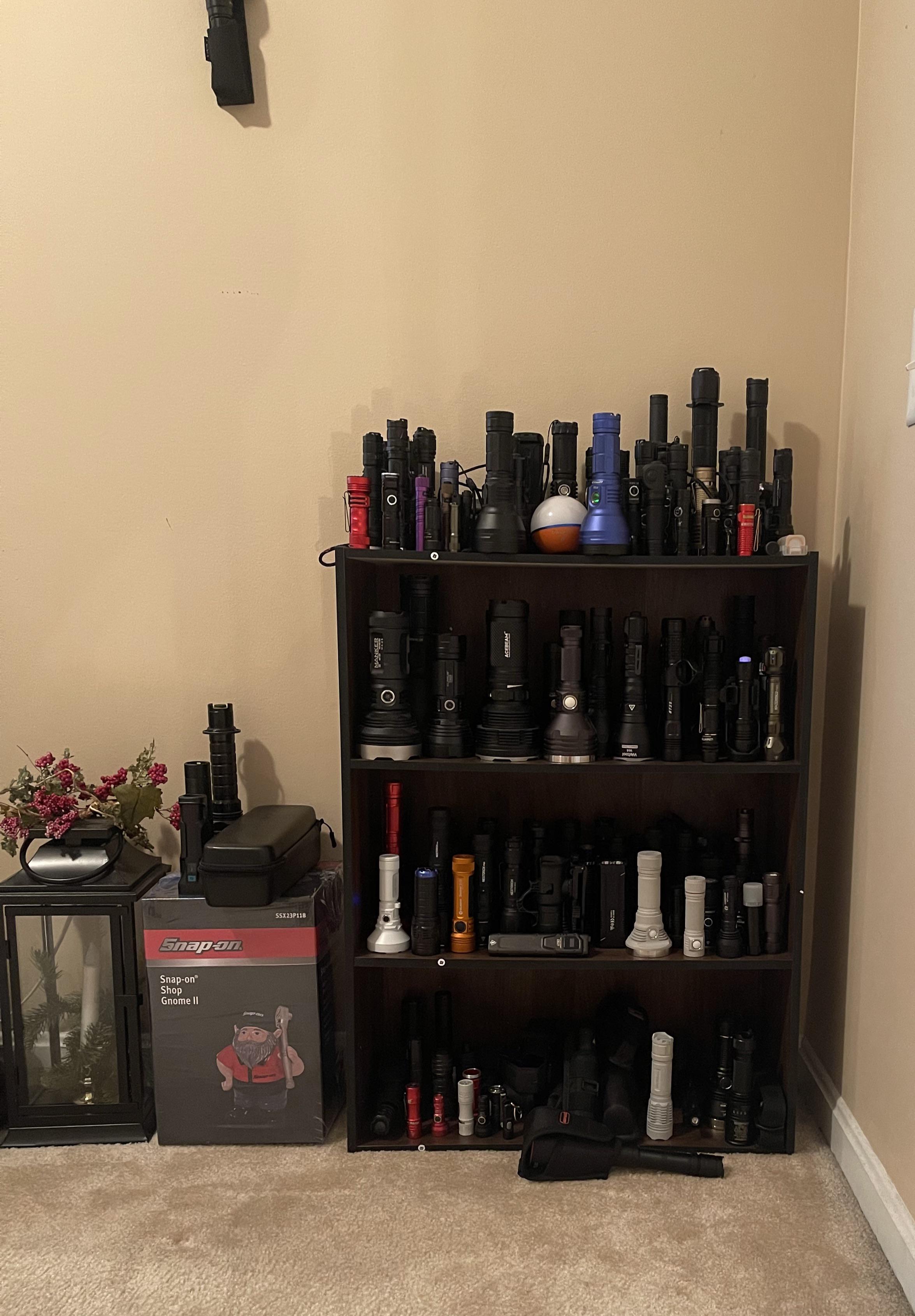In Flashlight Was able to fit 80% of my lights on this cheap shelf I bought. I think I have a problem……….need another shelf. How do you store you light ? August 5, 2023 Was able to fit 80% of my lights on this cheap shelf I bought. I think I have a problem……….need another shelf. How do you store you light ?by FXDSPIKED flashFlashlightlight Prev Post Boker Barlow BFF Sheath Ambidextrous? And other EDC Fixed Blade Recommendations? August 5, 2023 Next Post When your on vacation and your wife says you can pick any knife in the store!!!!!!!!! August 5, 2023 Related Posts Foggy beam shots January 15, 2026 Nichia emitter getting some love in Journal of Hospital Medicine. January 15, 2026 Decisions decisions… Olight ArkPro vs. the Wurkkos HD01 Pro January 15, 2026 1 Comment RIPmyPC 2 years ago Floating shelves! And magnets with the strongest double sided tape for those with a magnetic tailcap.​(yes you may have a problem)Write A CommentYou must be logged in to post a comment.