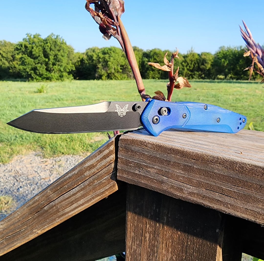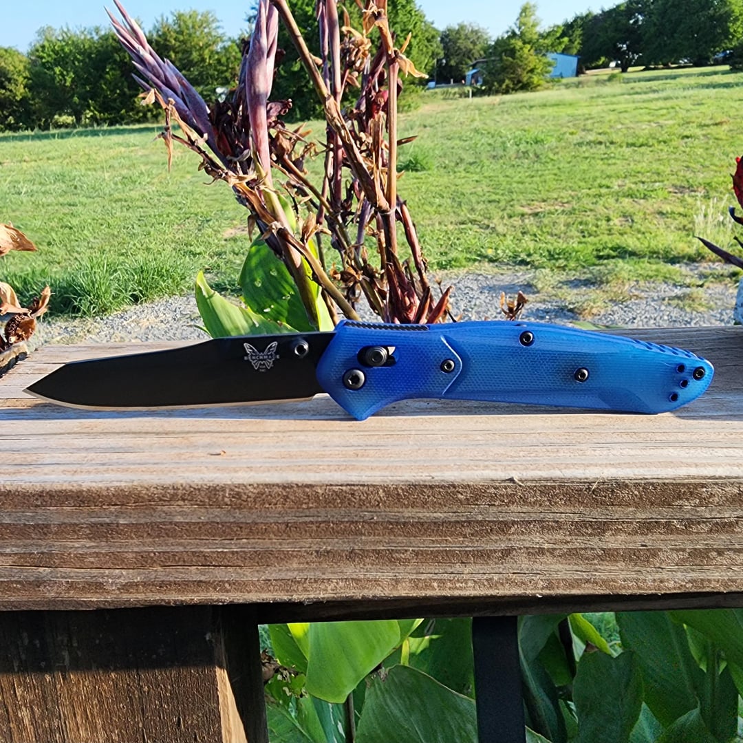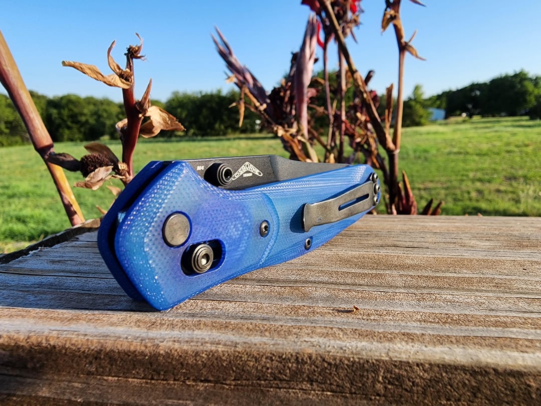 Jade G10, Rit Dyemore Sapphire Blue for synthetic fabrics. She went for 3 30 second soaks. I’ll admit, I was very lazy. I didn’t take the knife apart. I was in a hurry. Just held it by the blade and dipped it 3 times.