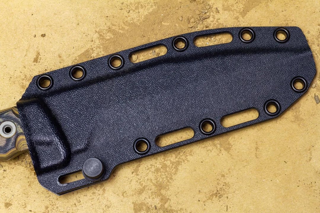 Probably my favorite feature is the tension lock he adds to the kydex sheath. It allows you to pull it out easily or if you are doing something and don’t want it to fall out of get grabbed, you can tighten it so it’s not removable.