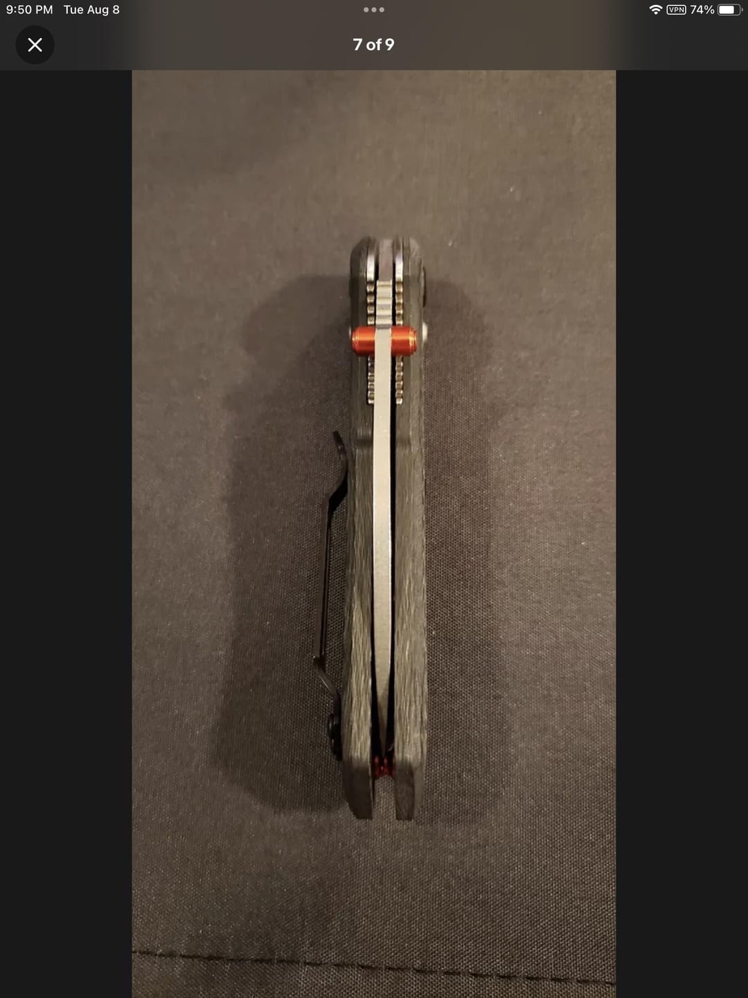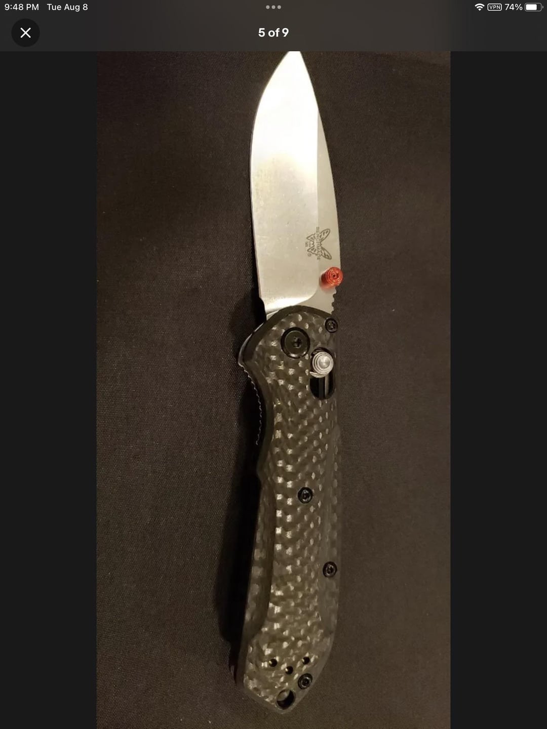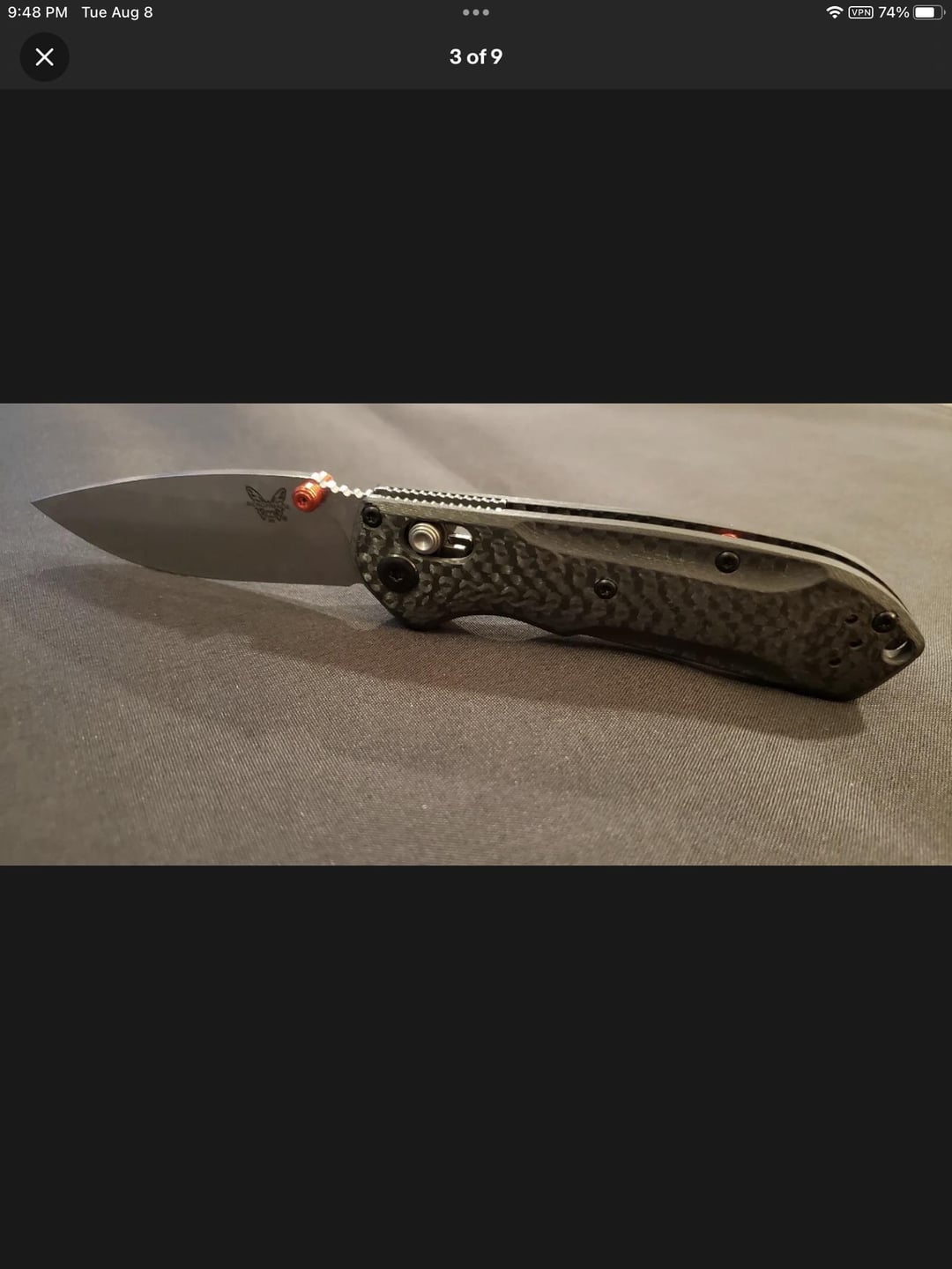 anteaterKnives 2 years ago The pivot screw head looks too flattened to me compared to the pics on BladeHQ. But I’m no expert.If the asking price is too good to be true, it probably ain’t true.