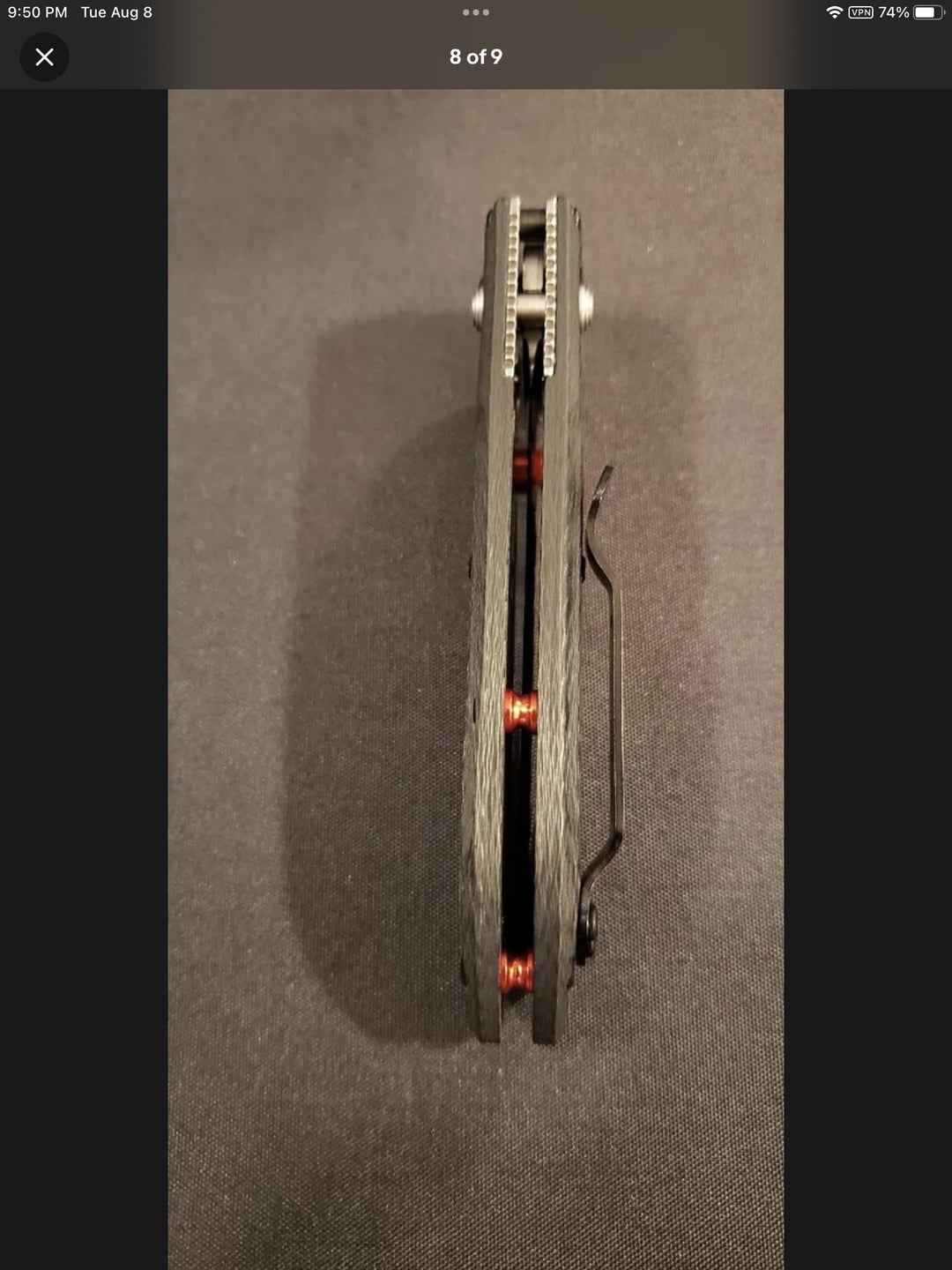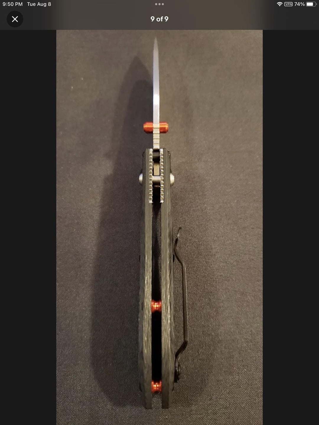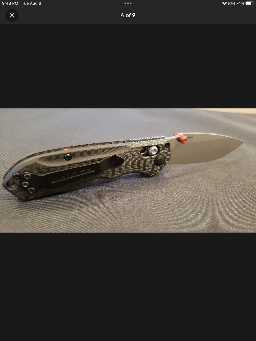 anteaterKnives 2 years ago The pivot screw head looks too flattened to me compared to the pics on BladeHQ. But I’m no expert.If the asking price is too good to be true, it probably ain’t true.