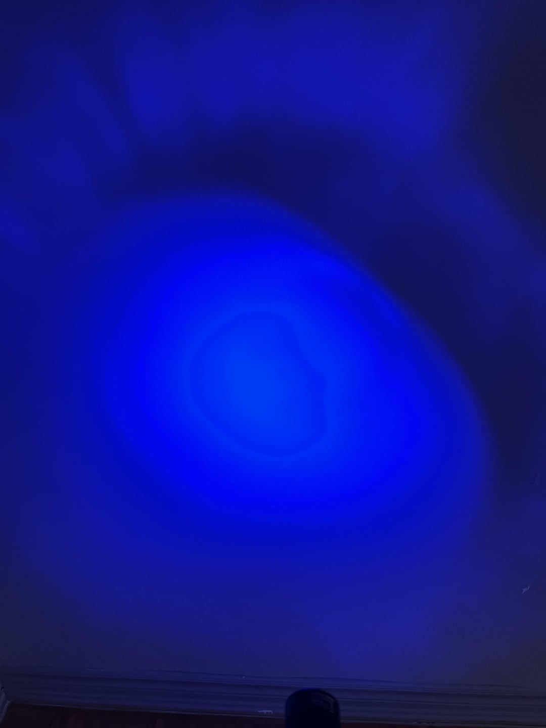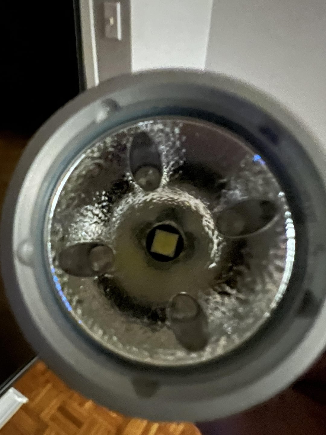 Check out these beam patterns on the secondary LEDs in the Nitecore SRT9. I think they look like eyes. πŸ˜† (the fourth LED is UV, not shown).