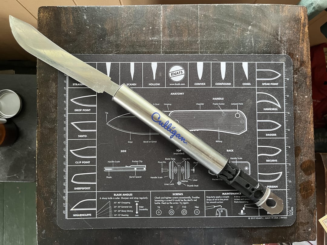 In KNIVES Culligan disassembly September 6, 2023 When is a knife not a knife? Answered. by iwerbs KnifeKnives Prev Post NKD! It finally came. 41/212 September 6, 2023 Next Post This old thing? September 6, 2023 Related Posts Who did the wharnie better? April 13, 2026 Best budget knife ive gotten April 13, 2026 Metamorphosis April 13, 2026 1 Comment iwerbs 3 years ago Pulled this out of my truck when I sold it… not a usable knife as far as I can tell. Left it in the garage where it developed a few spots of light rust. Thinking I could make a handle for it as a full tang, shorter, fixed blade knife.Write A CommentYou must be logged in to post a comment.