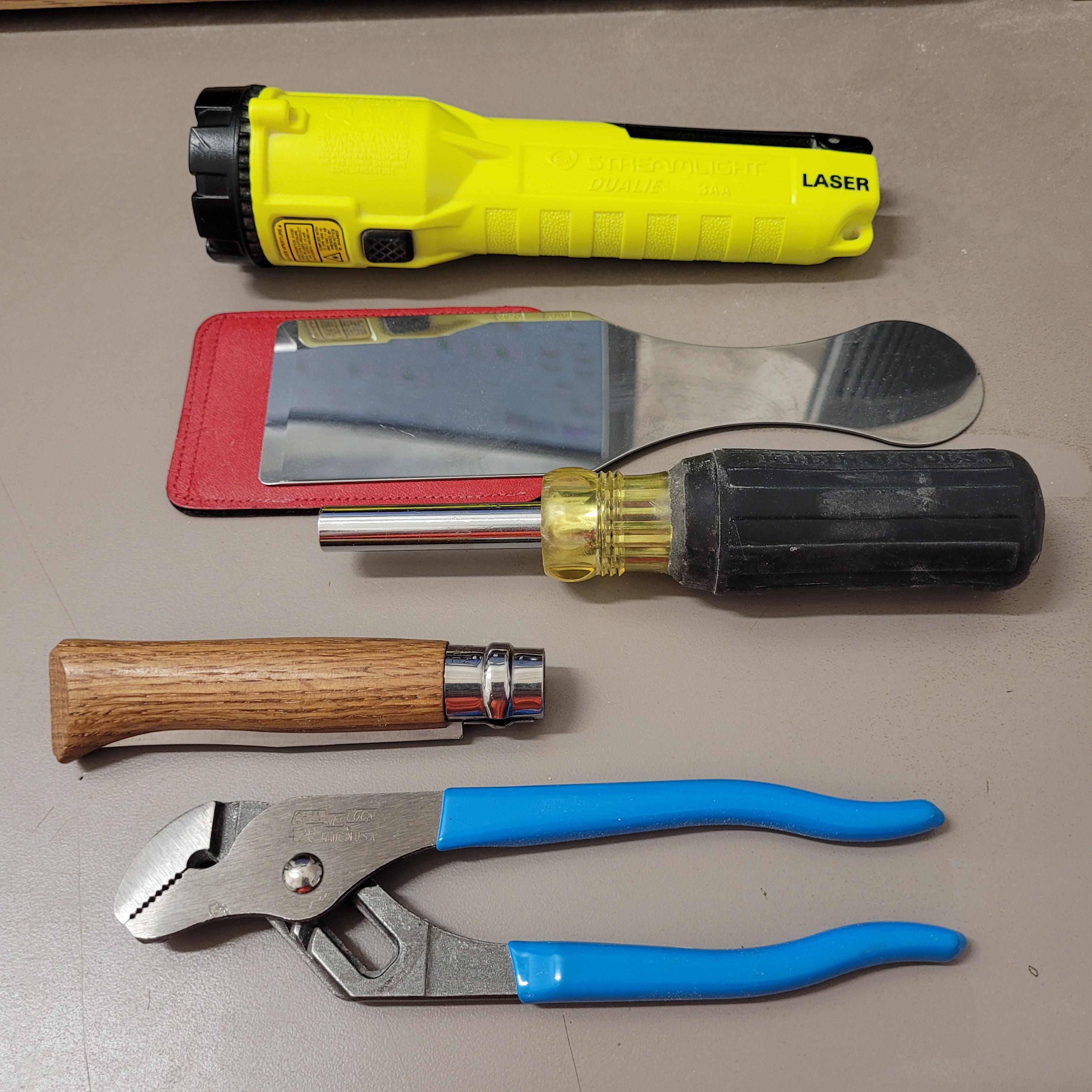 liminalwaffling 2 years ago Streamlight “dust proof” flashlightflour slickklein tools nut driver/comboOpinel No. 8Channel Lock 426