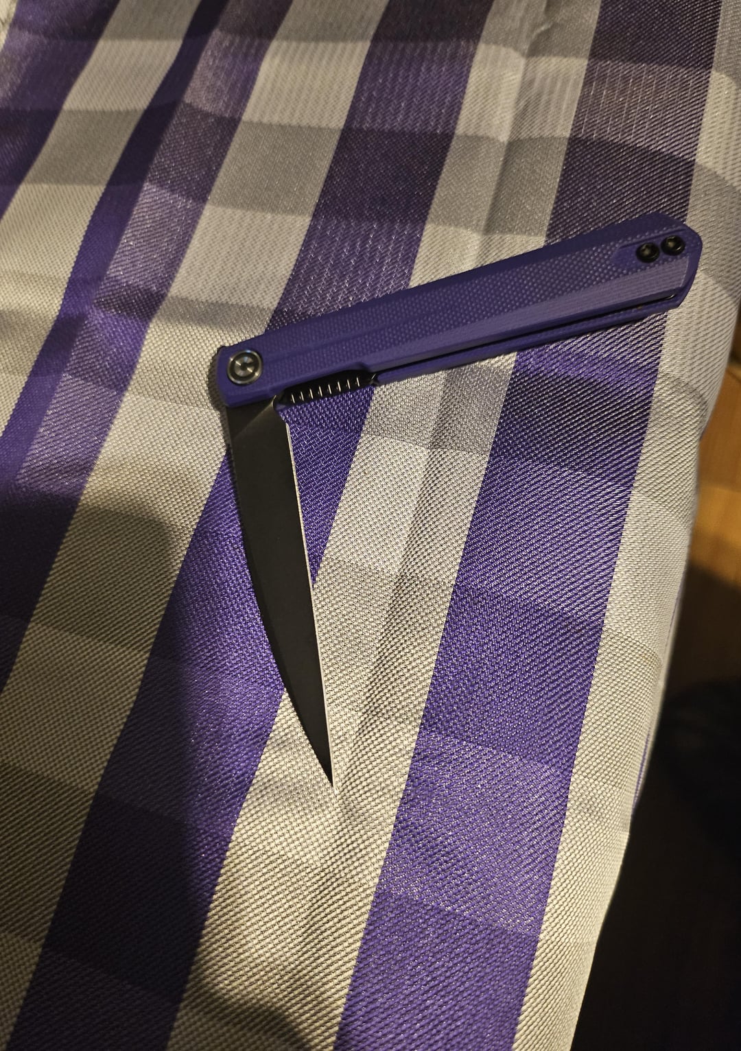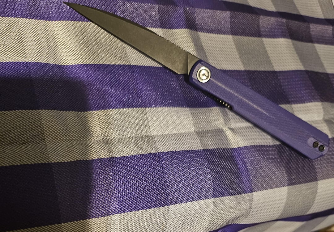 Civivi klavi. Super fun little knife. After many hours of reading posts and comments on this sub, I finally bought a real knife. Couldn’t be happier with it. Works great for what I use it for. Only complaints I have are it wasn’t sharp and the alignment is off when it’s closed (idk the technical term if there is one). If anyone can lmk how to realign the blade, that would be awesome.