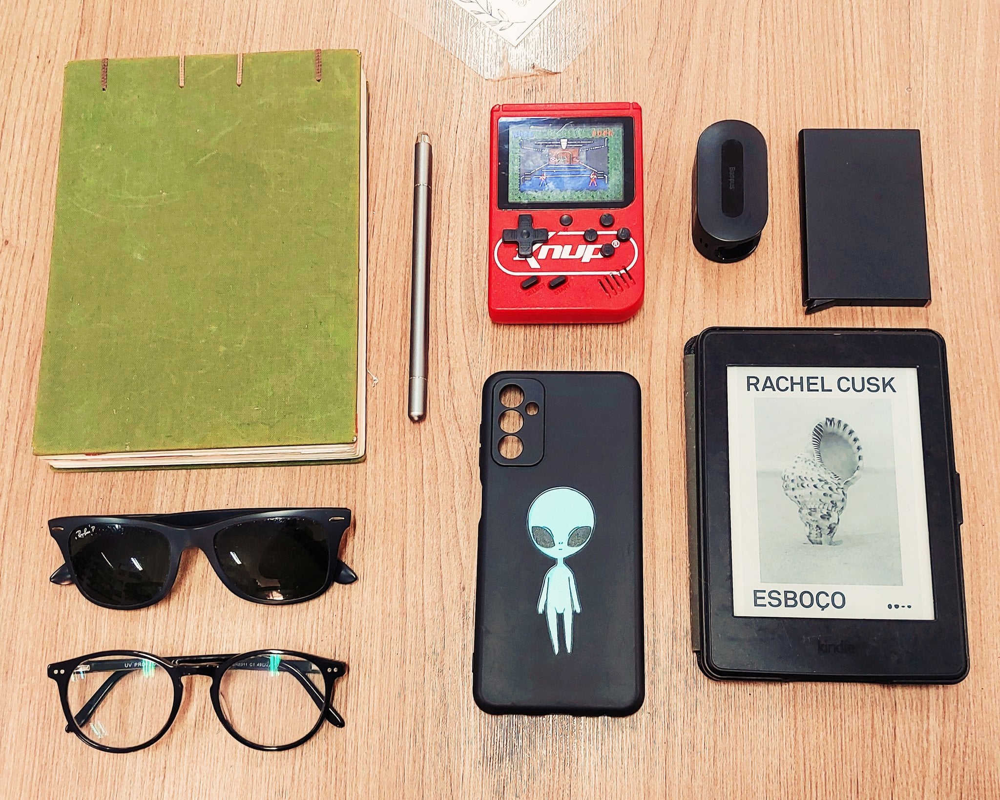 diegoreverso 2 years ago This is what I’m taking with me everyday:– A sketchbook– A stylus pen that also has a ballpoint on it so I can draw on my sketchbook and on my cellphone– A cheap pocket emulator– Baseus bowie ez10 earbuds– Metal wallet– Kindle paperwhite 2015– Samsung M23 5G– RayBan Sunglasses– Regular glasses