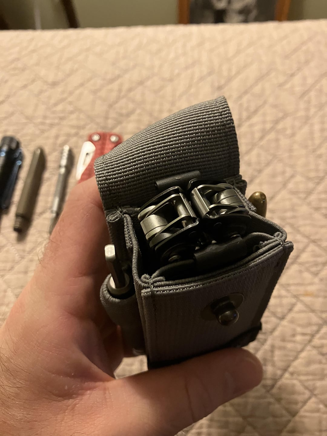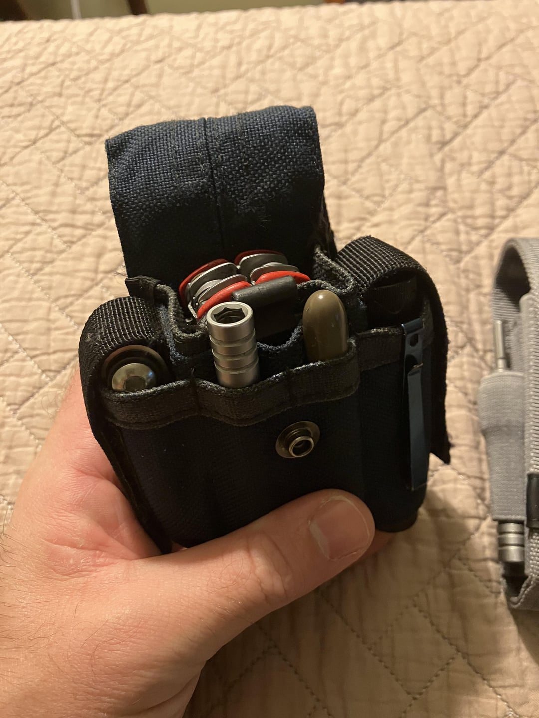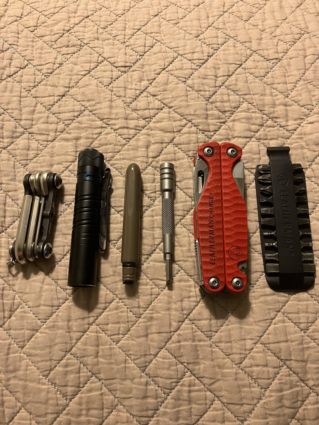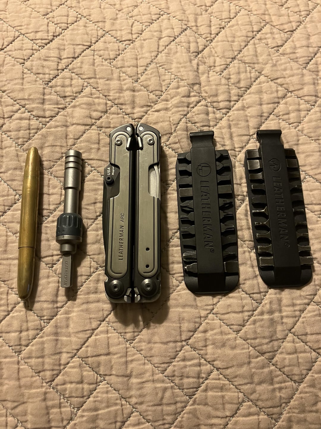 Carried the Charge in the Skinth once the original black nylon Leatherman holster wore out. I appreciated the extra pockets for the flashlight and mini metric hex key set, super useful as a bike mechanic. Once the new Leatherman sheath starts to wear out, I’ll probably just move the Arc into the Skinth. I don’t really need two bit sleeves, but the pockets are there and I don’t have anything else thin and flat to put in one.