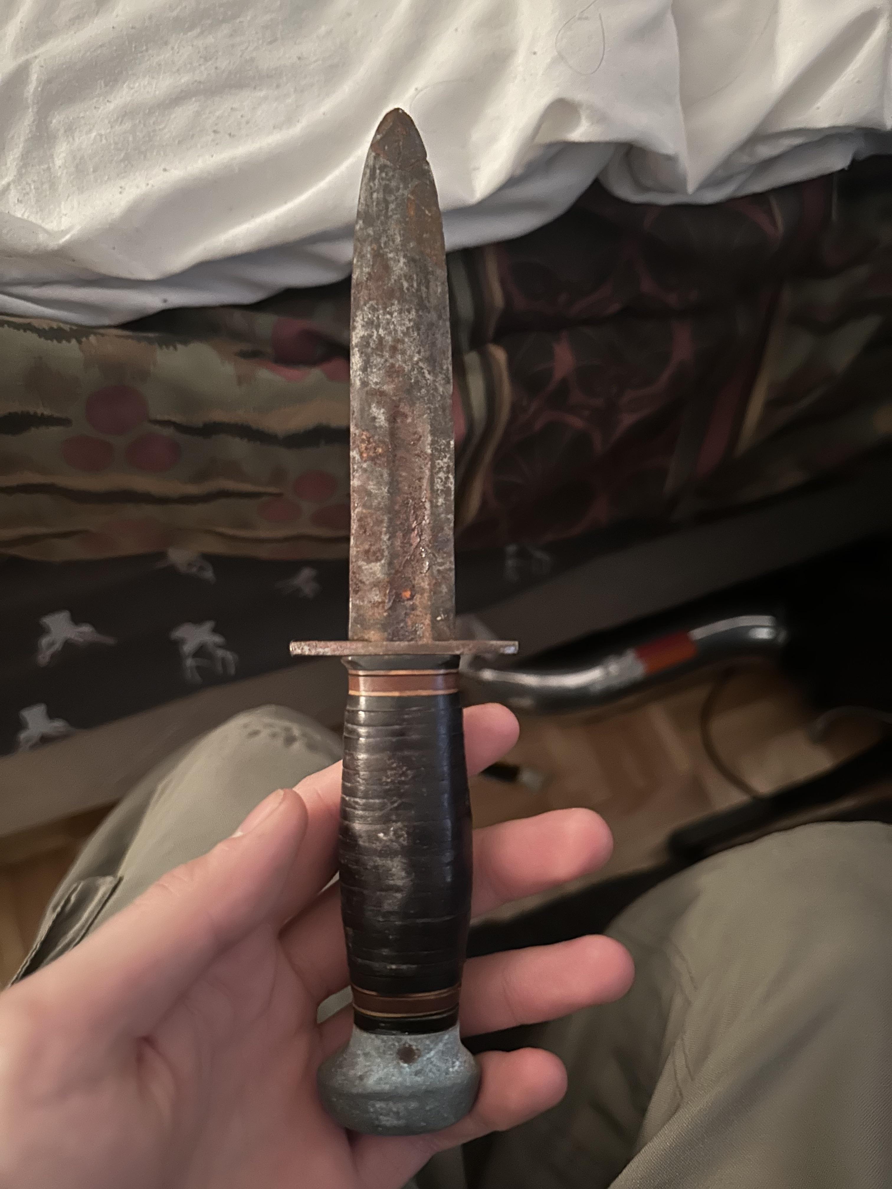 In KNIVES What is the name of this knife? November 11, 2023 My grandpa gave me this in his will and i’m still trying to find where it came from. by spoodersweg KnifeKnives Prev Post Me likey copper November 11, 2023 Next Post A.D Wadsworth & Sons Gentlemen’s pocket knife November 11, 2023 Related Posts New Year’s Resolution Week 3 January 17, 2026 Need More 950’s! January 17, 2026 Ever dig out an old favourite and wonder why you’d ever put it down? January 17, 2026 5 Comments spoodersweg 2 years ago by the red handle i know it’s probably from the ww2 era but there’s nothing else GrimmWilderness 2 years ago “Yours is the perfect size babe, the big ones hurt” SurgenSK 2 years ago Benjamin Jack3489 2 years ago Looks like a WW II US Navy Mark 1 that has been reshaped into an abalone knife. GoreyGopnik 2 years ago jimWrite A CommentYou must be logged in to post a comment.