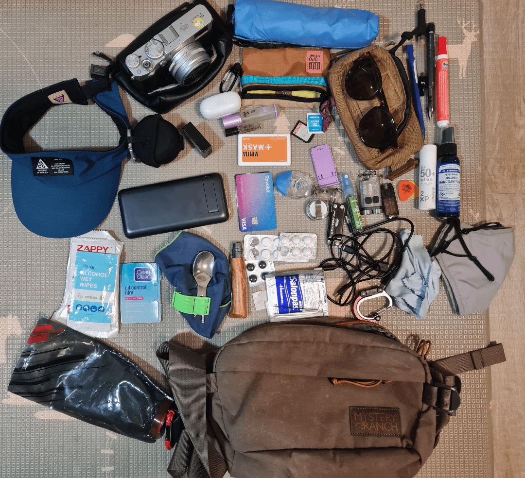 Current EDC, mainly for days exploring with family. It’s a messy EDC, stuffed fully into a hip pouch. I find lots of joy searching through my bag for something.