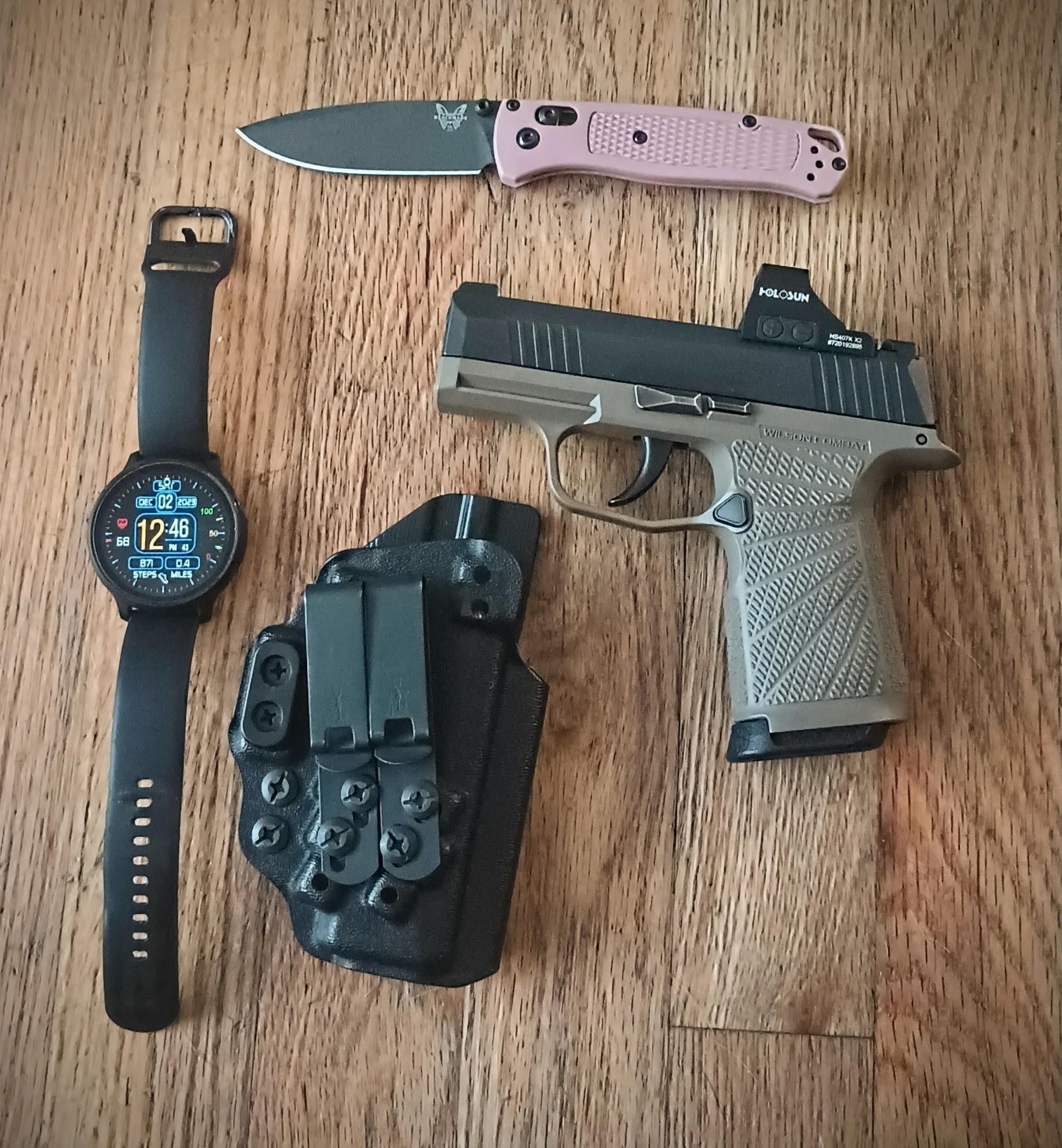 In EDC Today’s light and simple carry December 2, 2023 Samsung Galaxy Active2 watch, Sig Sauer P365 with Holosun 407K red dot, Tenicor Certum3 holster, Benchmade Bugout knife. 👍 by Academic-Focus8013 EDC Prev Post [NLD] On The Road MK4 mini December 2, 2023 Next Post AWT skinny Shaman scales Black Friday pickup December 2, 2023 Related Posts Old School January 15, 2026 Dumper Pocket Dump January 15, 2026 Actual EDC and slightly extended EDC January 15, 2026 2 Comments Academic-Focus8013 2 years ago Forgot to mention the Wilson Combat P365X/XL grip module on the pistol. Black-Shoe 2 years ago The amount of hardware on that holster is awe inspiring.Nice carry.Write A CommentYou must be logged in to post a comment.