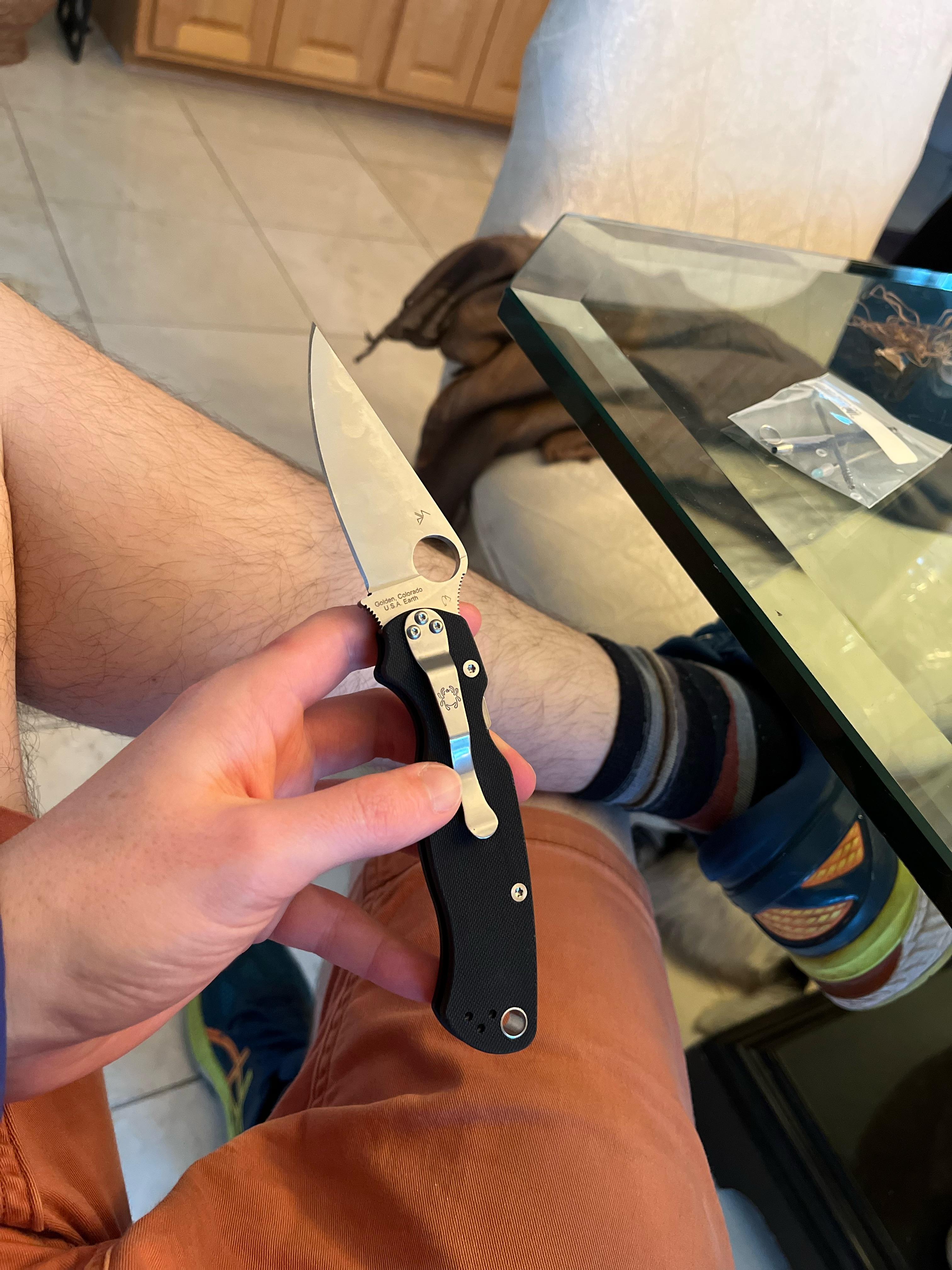 Tip up and position the the clip where the blade is against the inside of your pocket