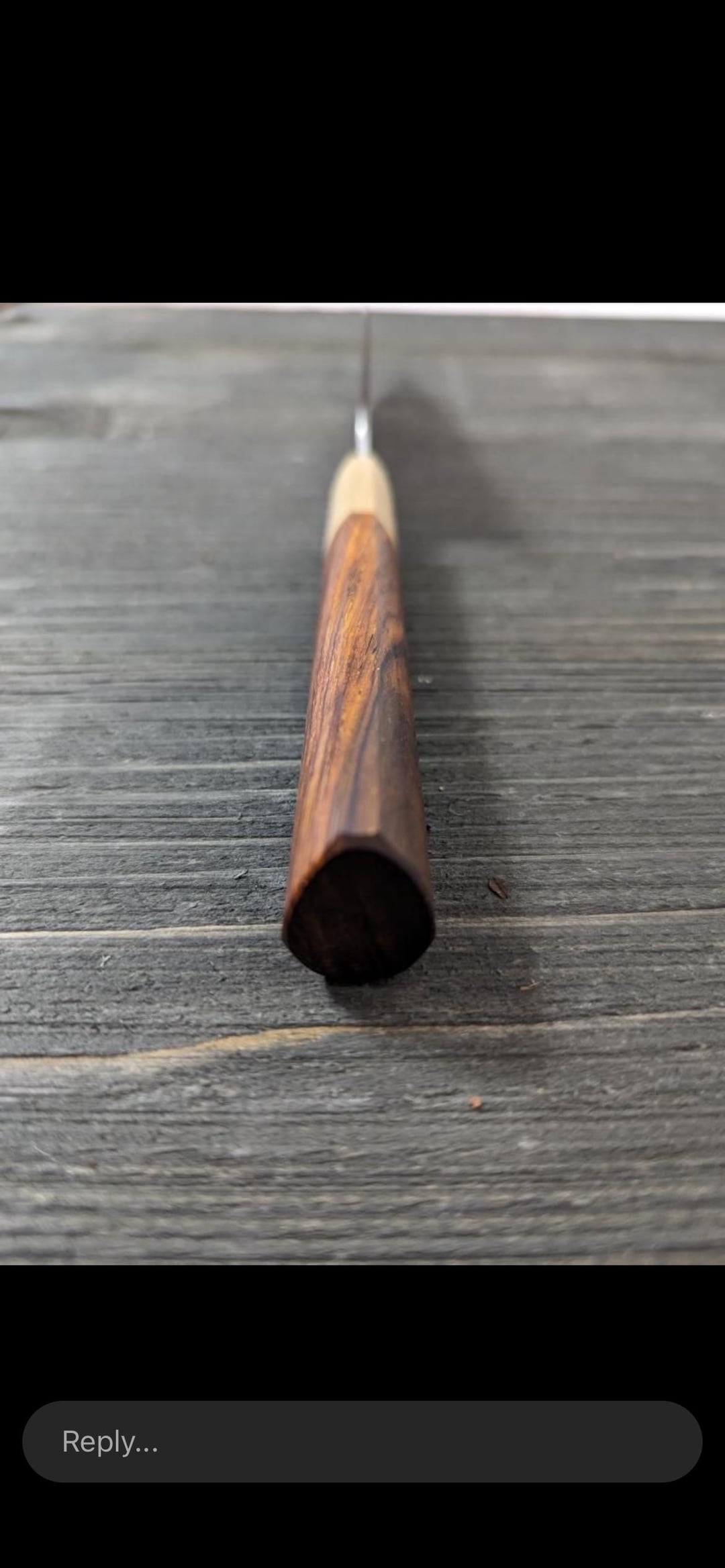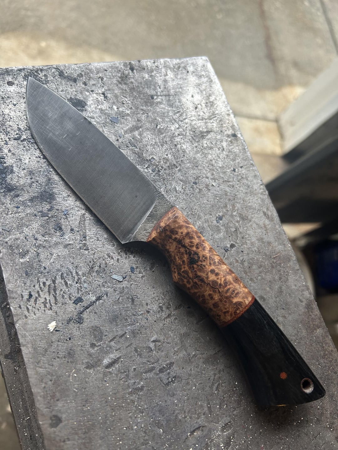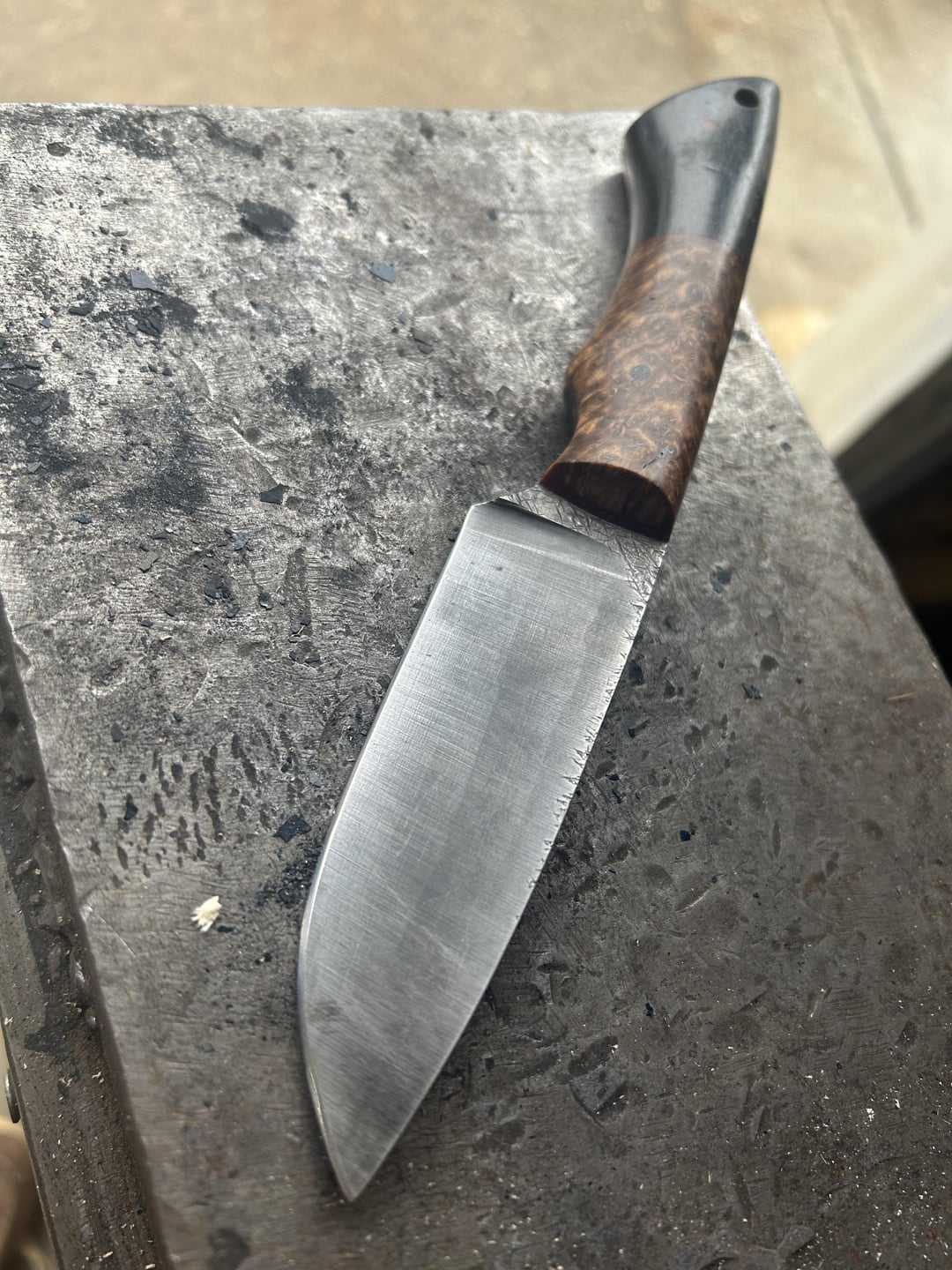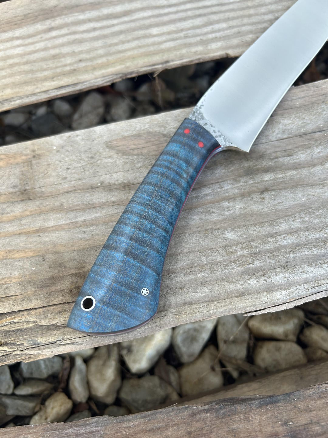 Handle is Nicaraguan cocobolo and stabilized birdseye maple