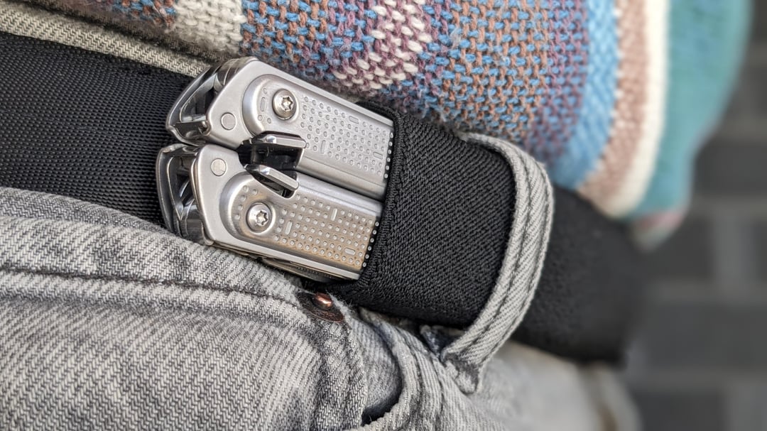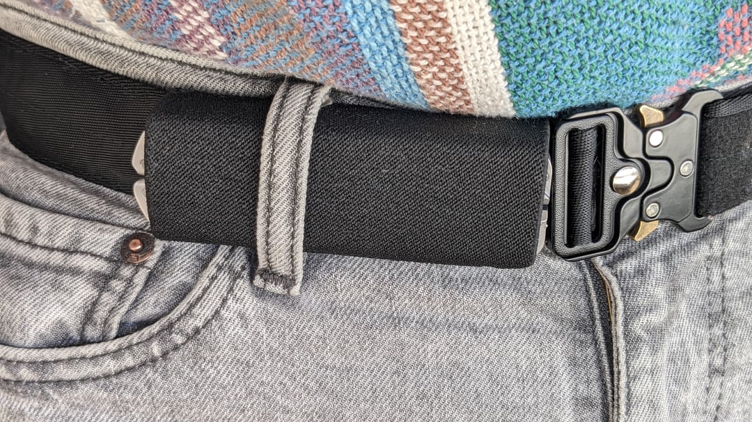 And as a last bonus, I also included a few photos of a belt I made to horizontal carry it. The ARC is definitely too bulky for pocket carry, and the P2 is on the cusp IMO. But carrying on a belt, just on next to the buckle has been awesome. Thin and out of the way, quicker to deploy than in a pocket, and you can squat and lunge without it digging into your thigh!