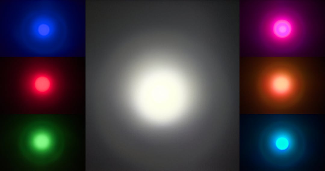If you like it colorful, the Wurkkos WK40 is the right flashlight for you, a little rainbow in your pocket! The four LEDs (white, deep red, green and blue) are controlled with a ring and a tail switch. It also has a buck driver for mostly constant brightness, USB-C charging and a short battery tube. You can choose from seven fixed colors or an infinite color gradient. Various blinking modes for your next party are included as well.