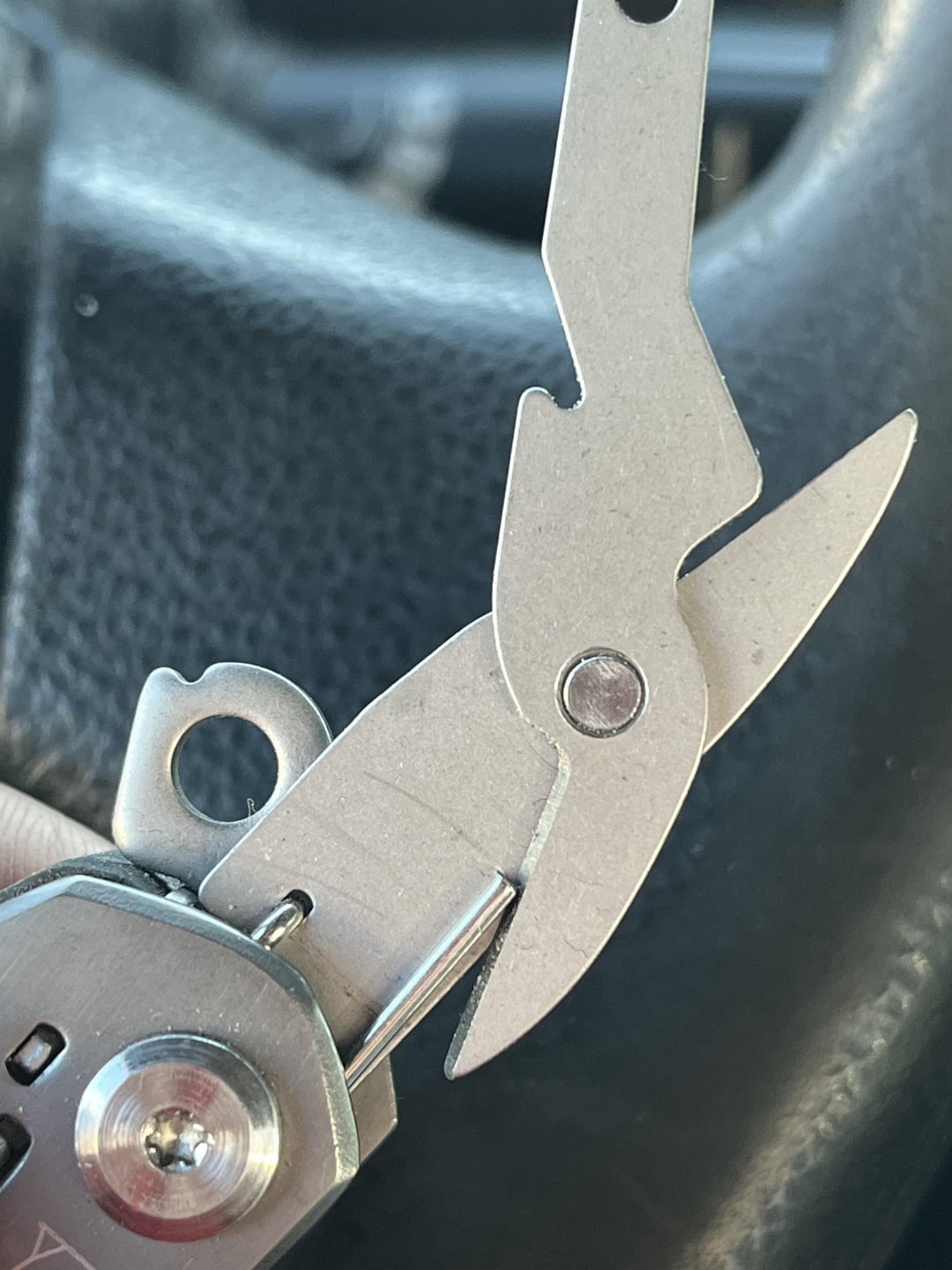 Opened the scissors and the spring popped past the usual stop (pic 2) got another blade, eased the spring out, and got the scissor past the spring, and of course it is now trapped by the other part of the spring.