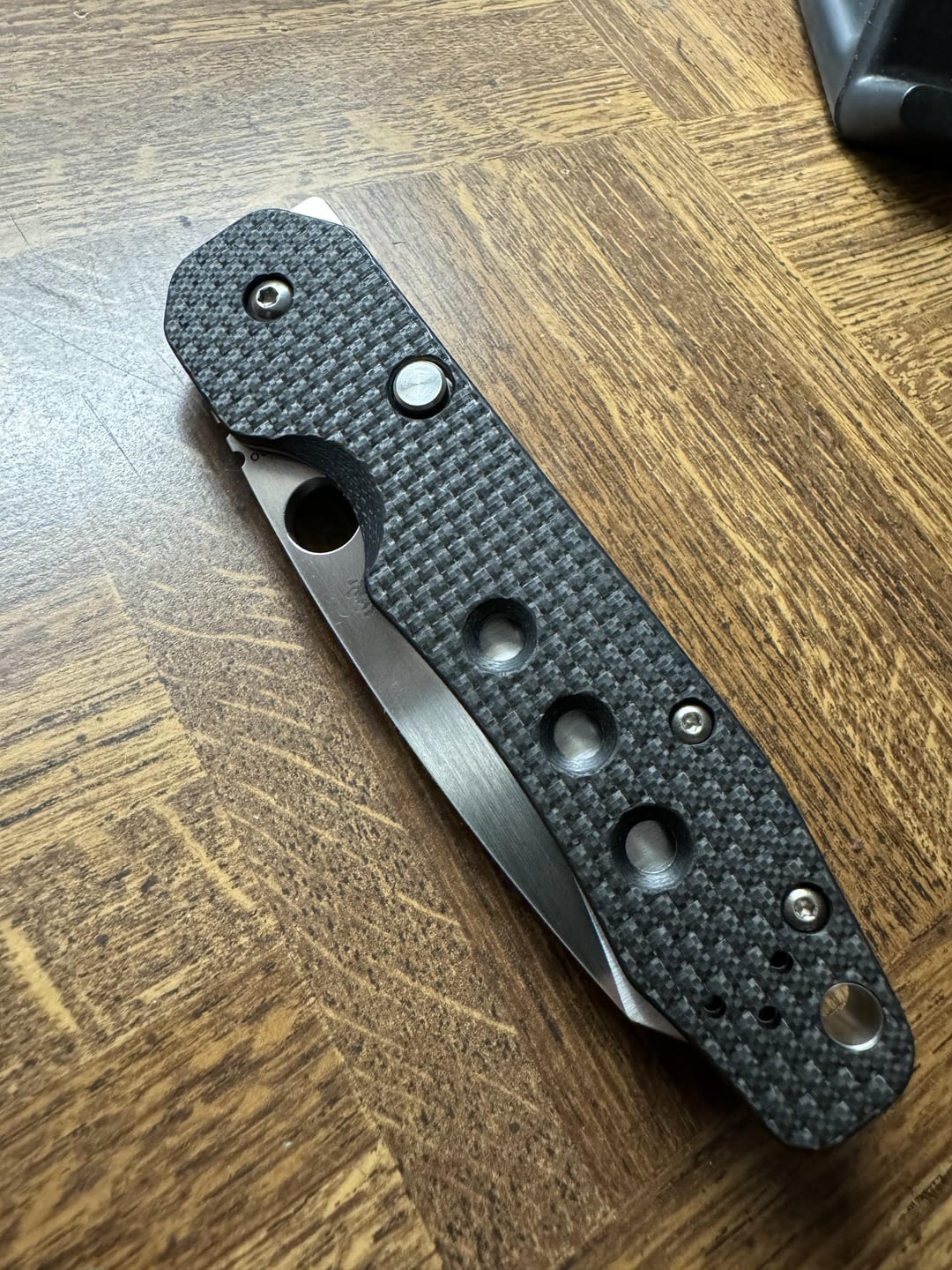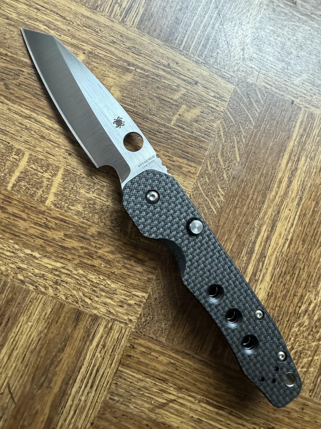I have never really been a huge fan of the Spyderco “look”, but so many great reviews led me to believe I needed to try one. I decided the smock was a good entry point for me. I like the look, comes with s30v and carbon fiber scales. I must say, I really do like it. It has a decent action and it is hands-down the sharpest knife I have ever received from factory.