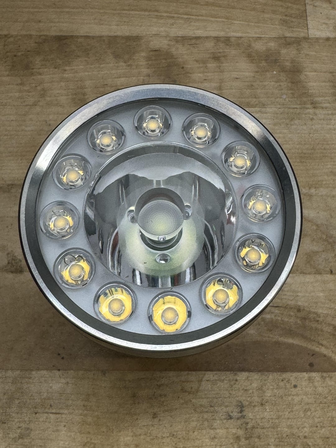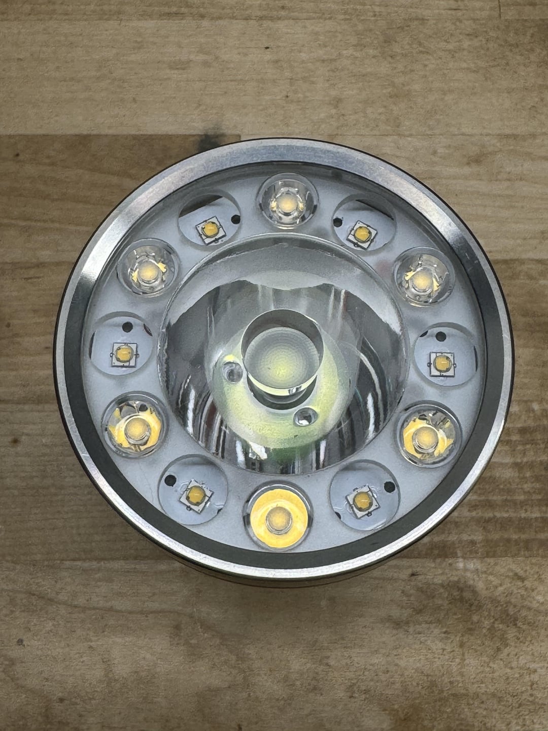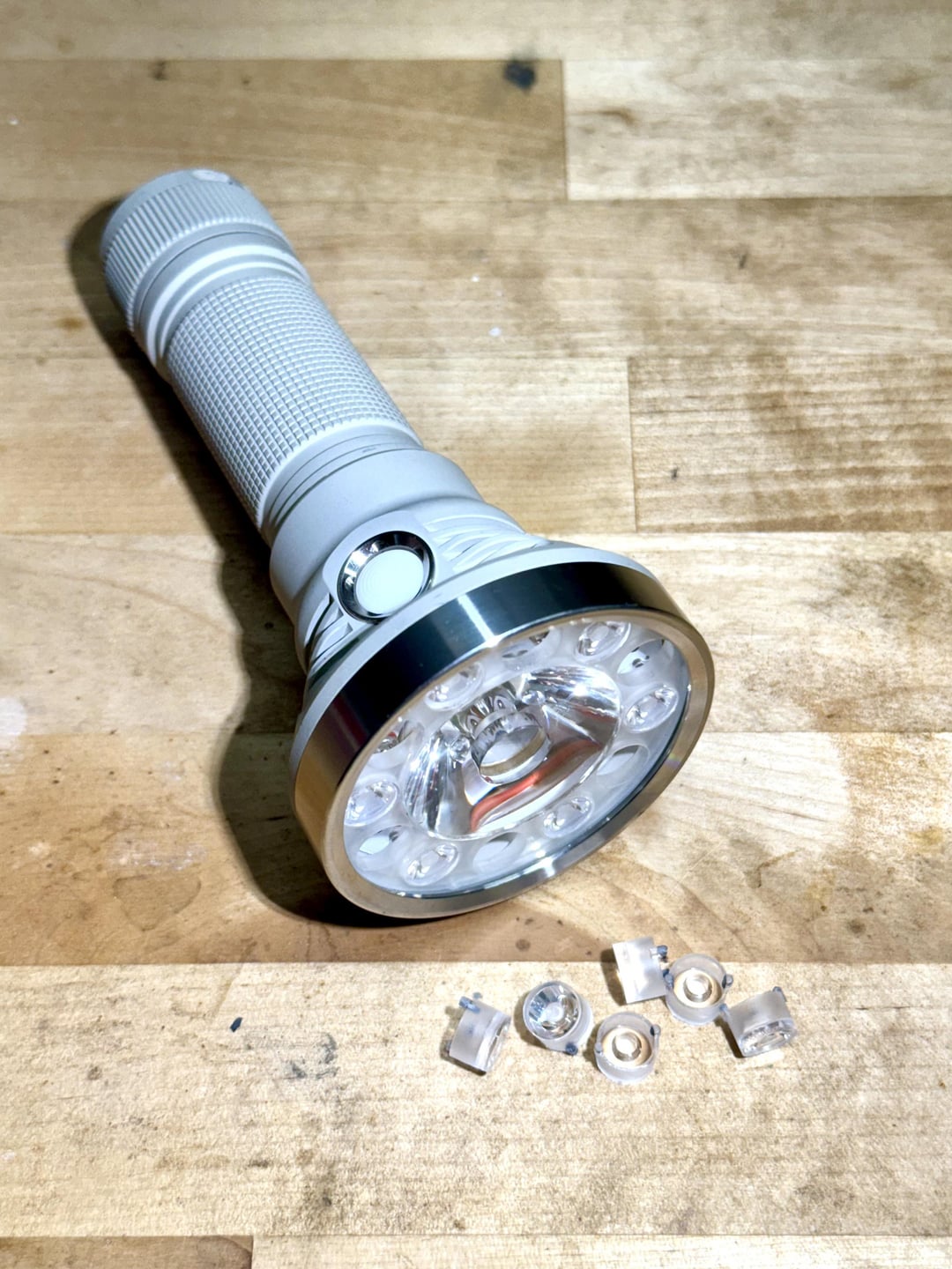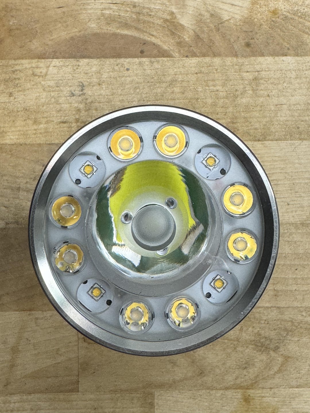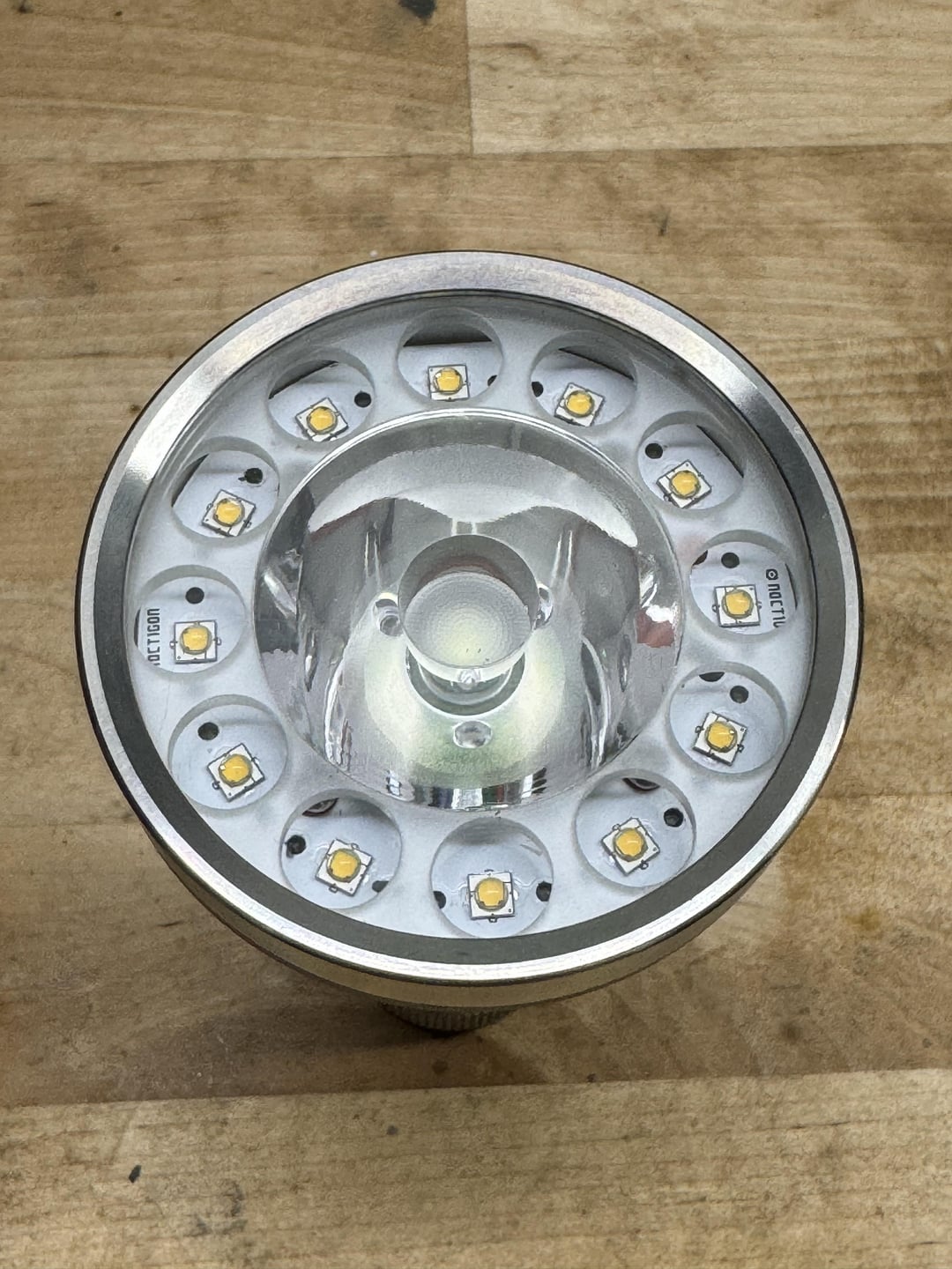 I have this Noctigon DM1.12 with SST20 (4000k) outer flood channel and SBT90.2 center throw channel. I love the light and these emitters but the SST20 throws a little more than I’d like so here’s a comparison of removing optics, beam shot picture order is: