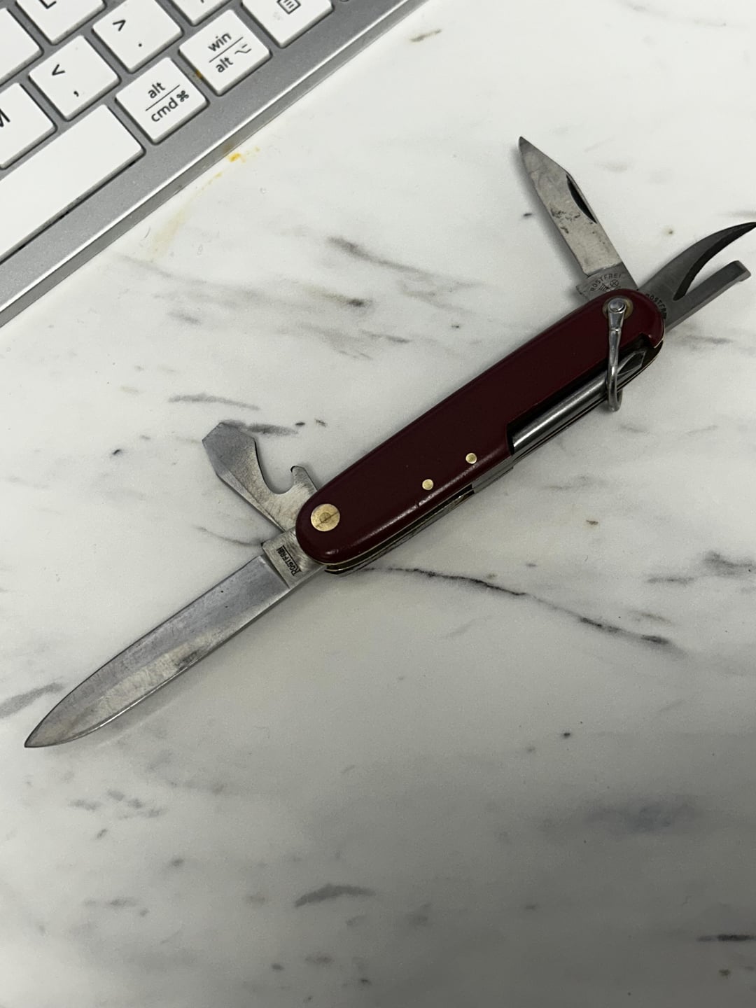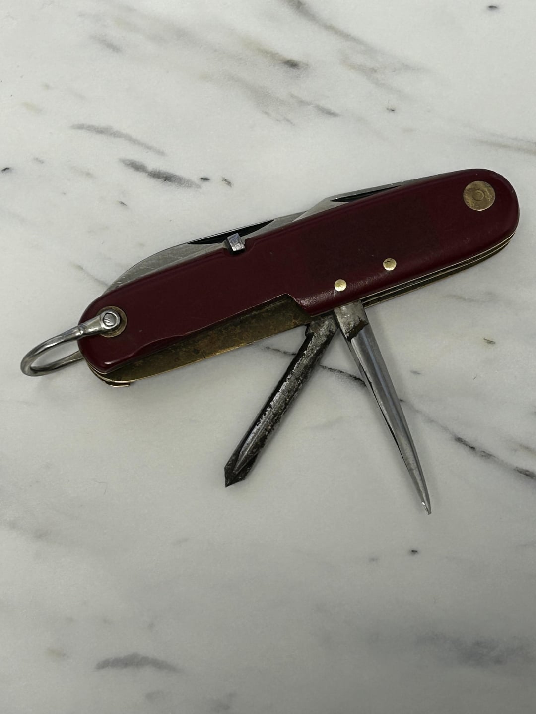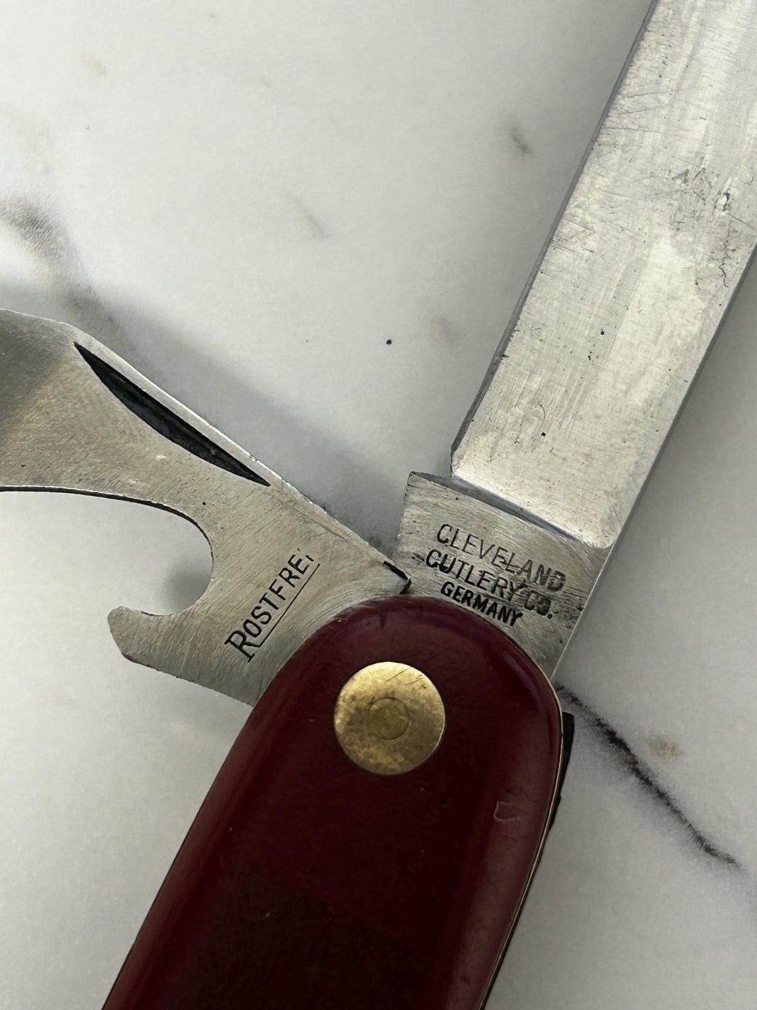 I recently acquired this multitool. Does any have information on old Cleveland Cutlery multitools? Even though, it says “rostrei” the screwdriver has rust spots, but overall, it’s a well-made tool. The small blade was very loose when in the open position, but a few taps on the shackle pin tightened it.
