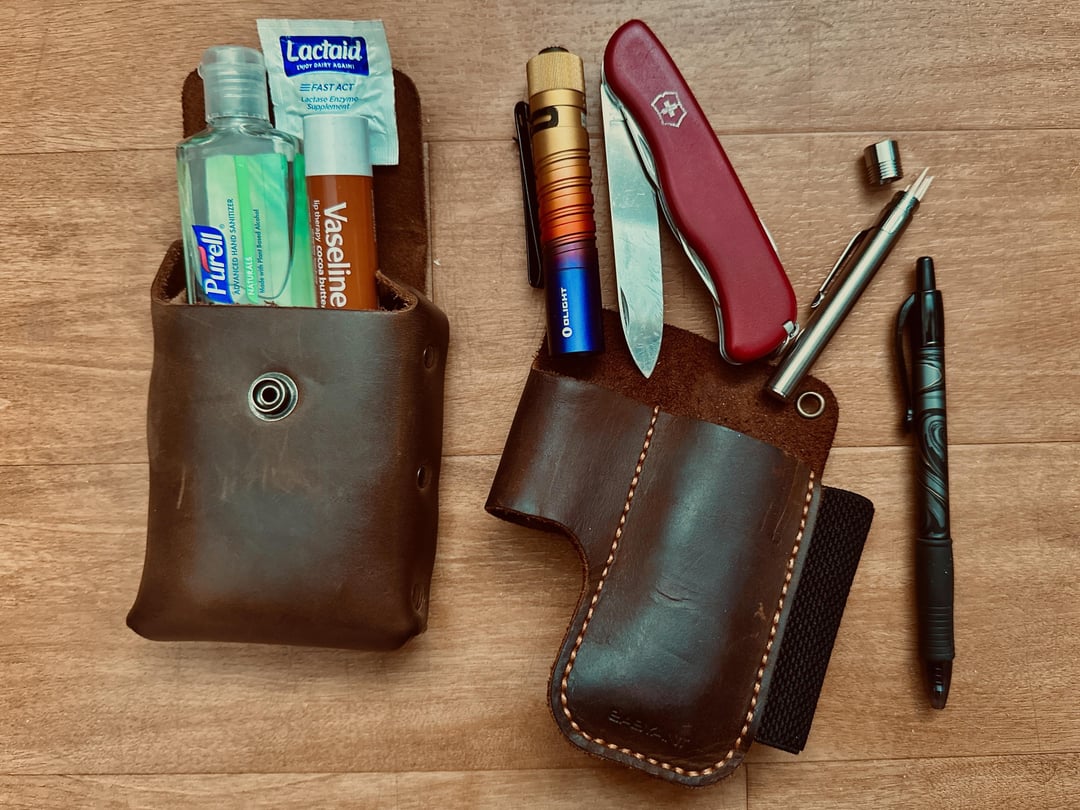 rerorichie 2 years ago • Hide & Drink belt pouch • Purell • Vaseline • Lactaid • EASYANT belt holster • OLIGHT i5T EOS Autism Awareness Edition • Adventurer Swiss Army Knife • Toothpick holder w/ ~8 toothpicks • Pilot G2 Mineral Art Edition