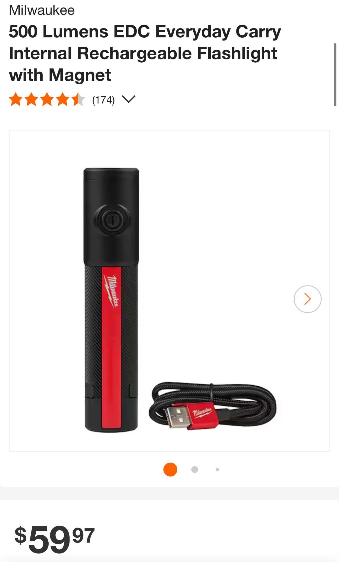 * The battery isn’t removable, so you can’t have spares, and when it wears out, the flashlight is trash.