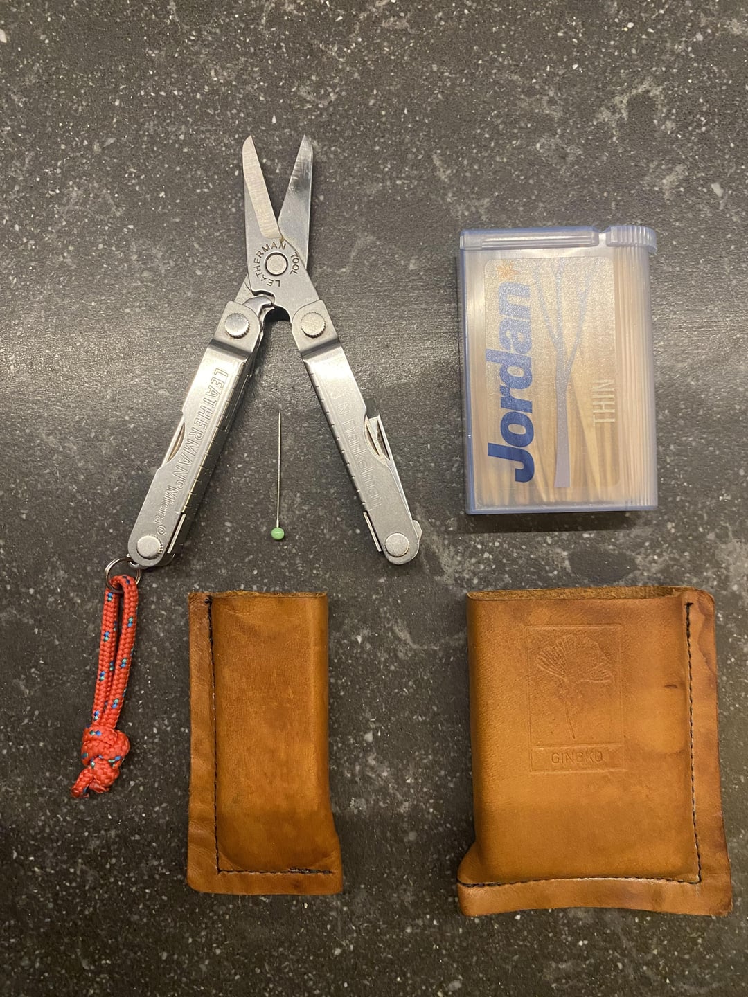 banaansausert 2 years ago Including: mini leatherman Micra, mini flashlight, Jordan toothpicks, pin, Moleskin dotted notebook, thin 3H pencil.