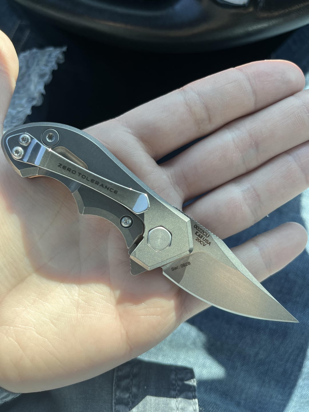 In KNIVES Just got this PERFECTLY AVERAGE sized knife today. April 25, 2024 Zero Tolerance 022CU CPM-20CV Stainless with solid copper.by WaltDisneysBallSack KnifeKnife ClubKnives Prev Post D3AA (almost) April 25, 2024 Next Post Today’s Carry with a bonus Kershaw that was sitting in the truck. April 25, 2024 Related Posts Any information on this Camillus? February 1, 2026 Finally found it! February 1, 2026 Peasant February 1, 2026 2 Comments _Bike_Hunt 2 years ago It was cold!!! And it touched a little water!! RodgersTheJet 2 years ago Those are great little knives, but beware if you have XL hands. I’ve seen a half dozen people slice their palms open on that model with larger hands.That tip is sharp as balls.Write A CommentYou must be logged in to post a comment.