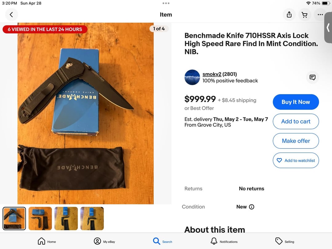 In KNIVES Over board $ April 28, 2024 Someone put this into words don’t hold back by knifetheater3691 KnifeKnife ClubKnives Prev Post He would sure look good purple. 🤔 April 28, 2024 Next Post Current carry April 28, 2024 Related Posts Is this knife worth cleaning? February 27, 2026 Little Known Theater Knife February 27, 2026 80’s Carbon Fiber Friday February 27, 2026 2 Comments knifetheater3691 2 years ago The sickness is strong with this 710 Benchmade. Unbelievable intunegp 2 years ago The 710 has always been one of their best designs, I figured the hype surrounding the new ones would drive prices up on the vintage ones too. Those prices are absurd though.Write A CommentYou must be logged in to post a comment.