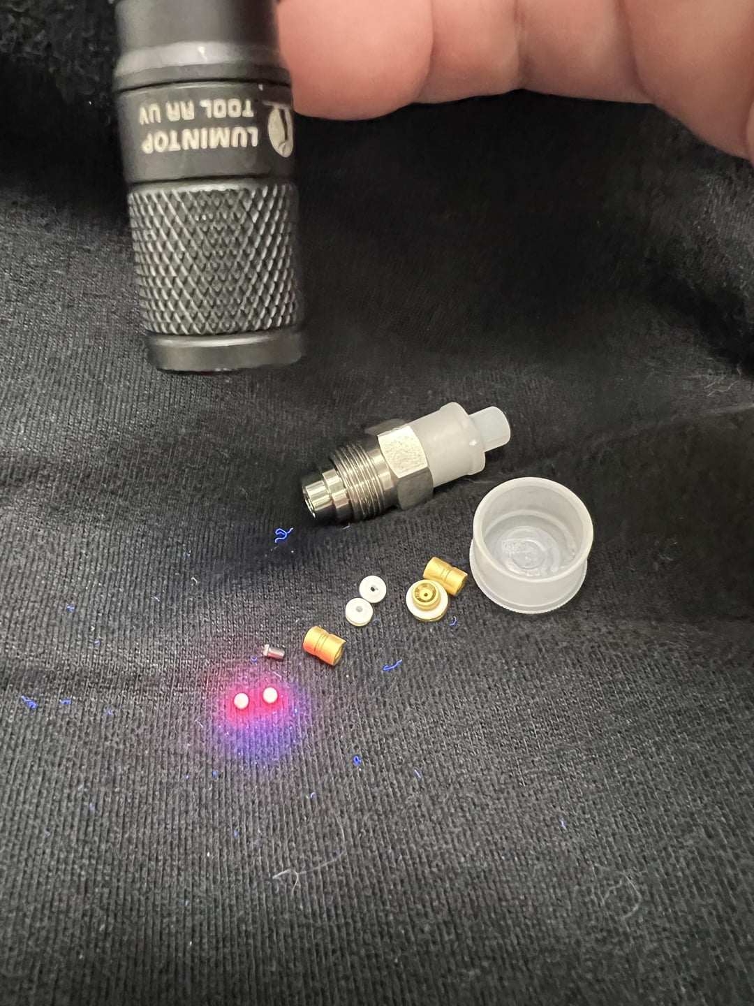 So I took apart a broken check valve at work because they have ruby balls in them. I had my TOOL UV and dang do they fluoresce! Just a little fun.