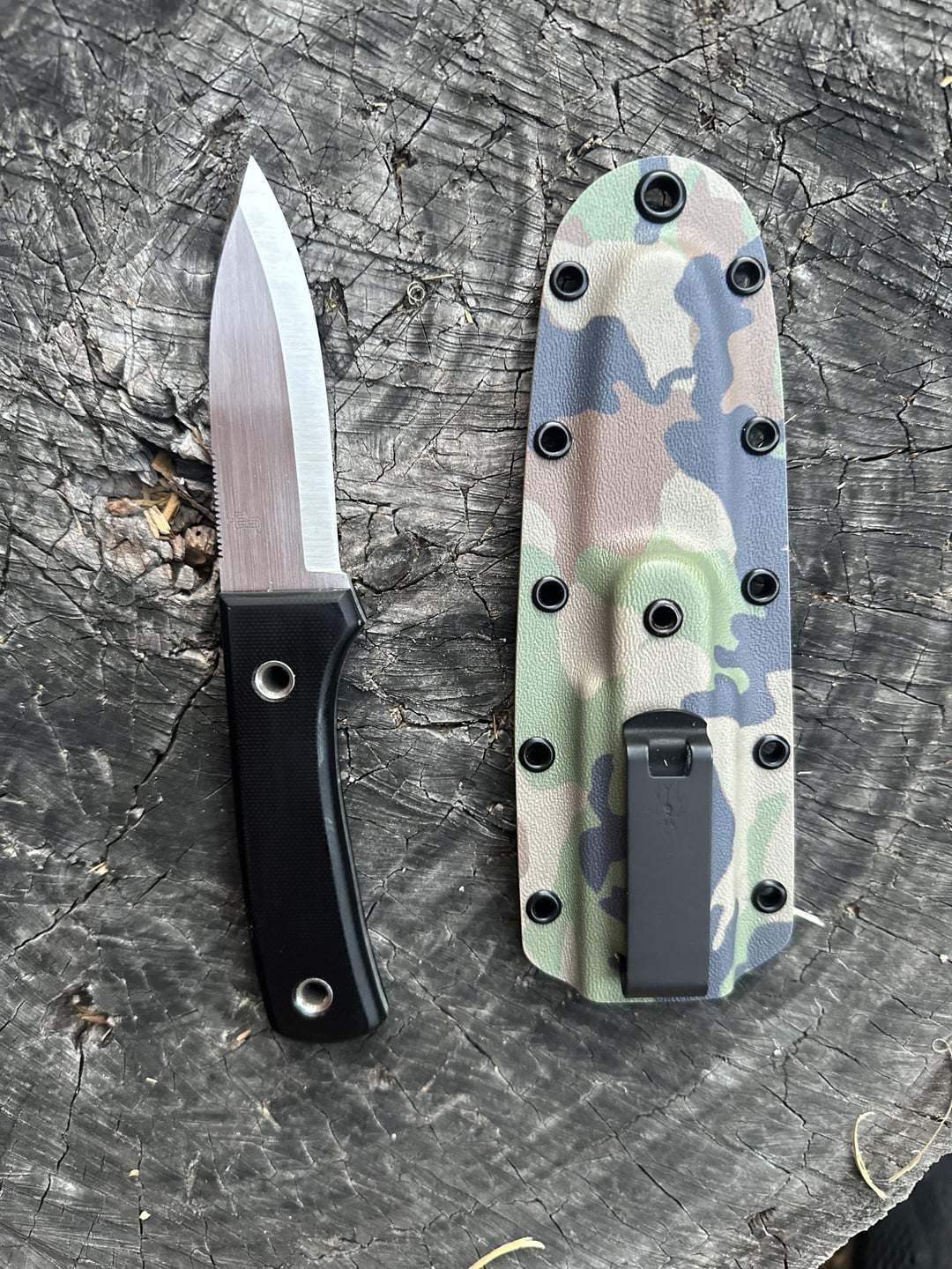 I just got this All Conditions Knife (ACK) from Program J. Itβs Scandi ground AEB-L with black g10 scales and flared stainless tubes. Itβs scary sharp and bombproof. The kydex has perfect retention and the DCC clip is my favorite to secure in my pocket.