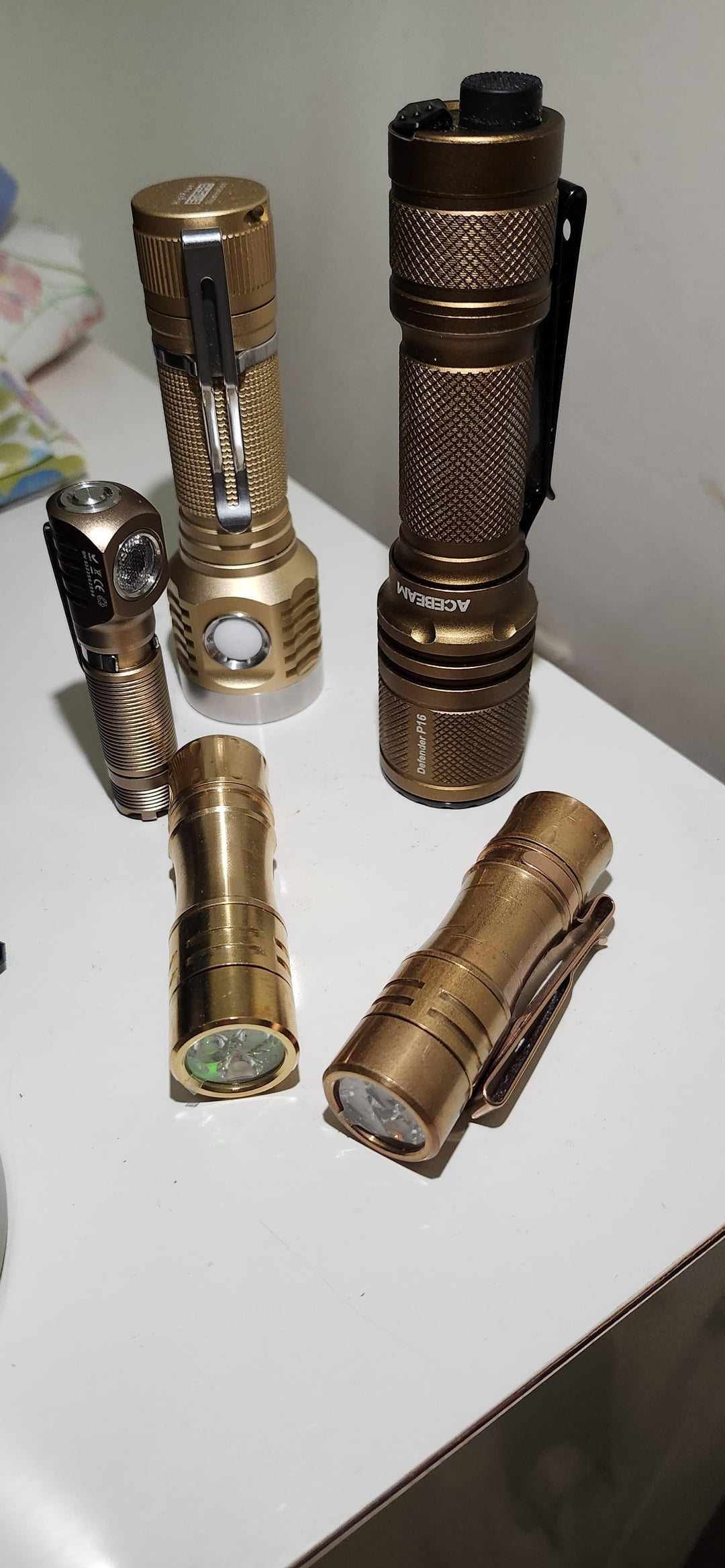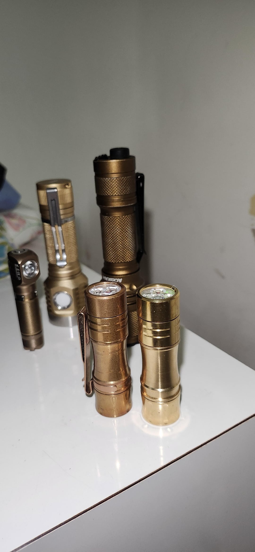 It’s nice to see my old one with patina and the brand new one! I really wanted a green aux 3000k but the other one is 3000k orange aux. I got them both on sales, the new one was something like $15 on aliex. Great little light to join the bronze team, my brass reylight penlight is missing in the family pic.