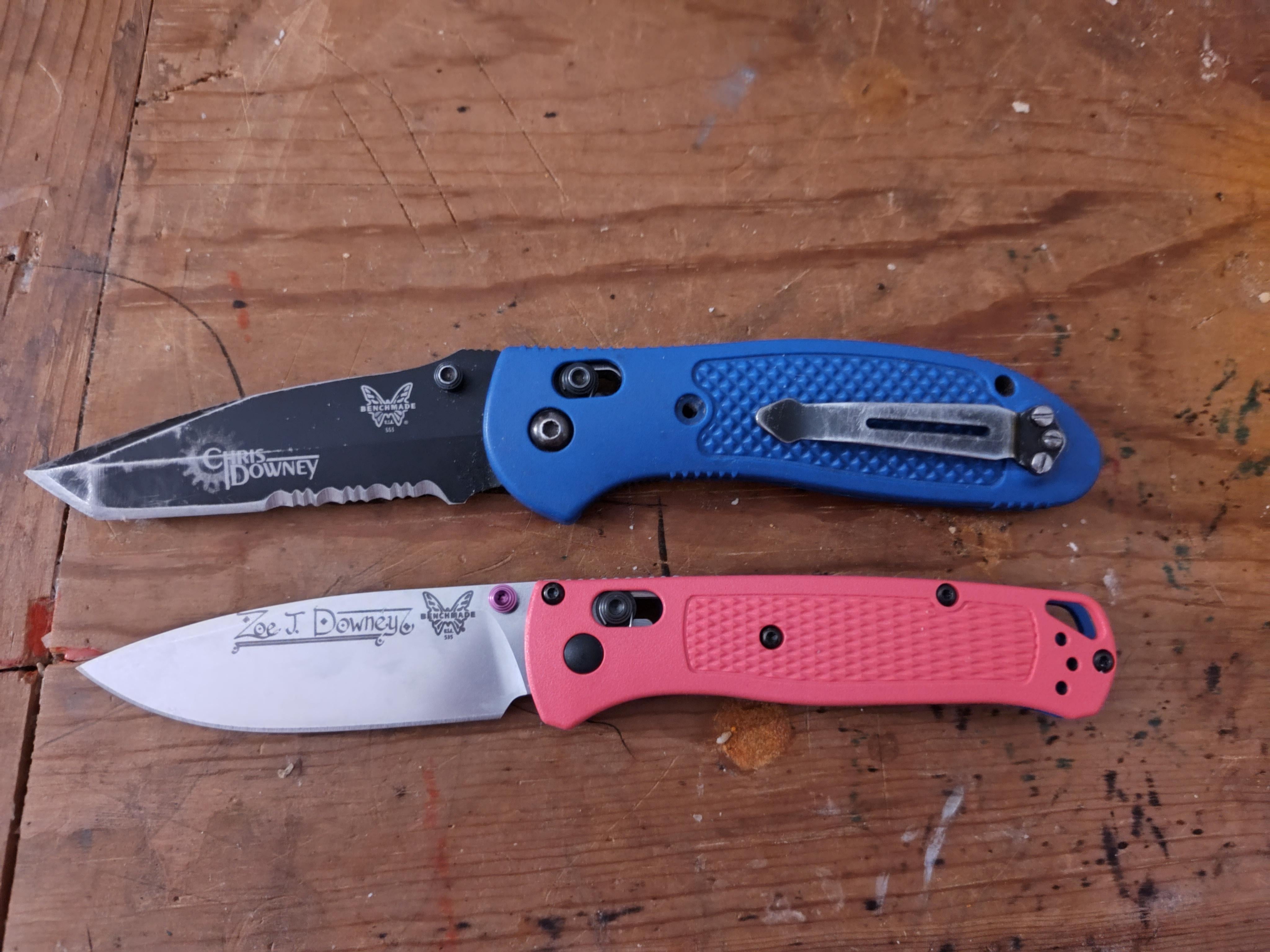 Some years ago, my brother got me my first Benchmade. He got it engraved with my name, using the logo I had designed for my art side gig. It was my favorite knife, and I used it for everything. Well, uh, I transitioned, and that name isn’t quite right anymore. So he updated it! New name, new logo, and a nice new knife. We’ll see how beat up this one gets lol