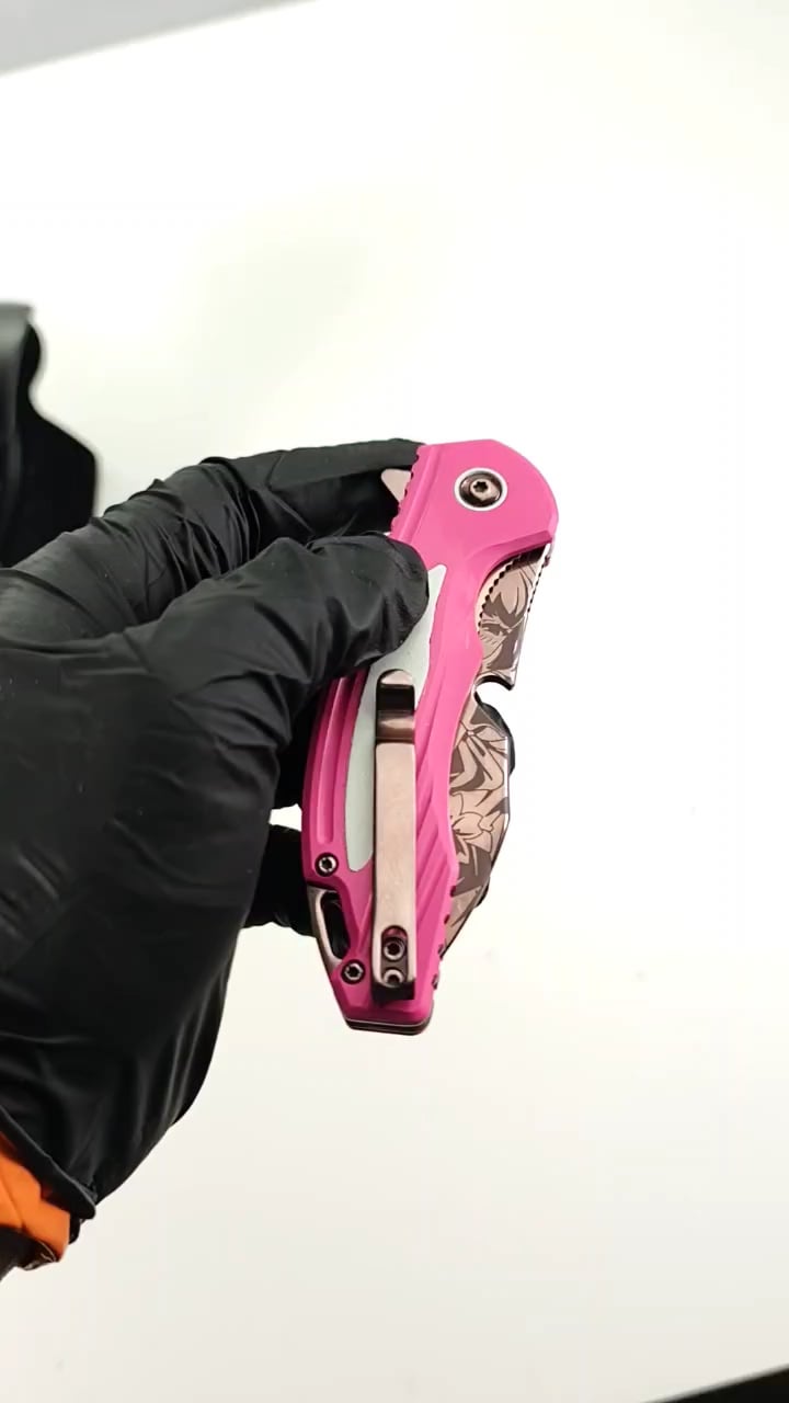 The black one at the end is the original knife for comparison. Used white spray paint to try and save money. Didn’t want to pay a ton of money to cerakote those small white parts. The TiCN Coating was already extremely expensive on every steel part of the knife, including the screws PLUS mirror polishing.