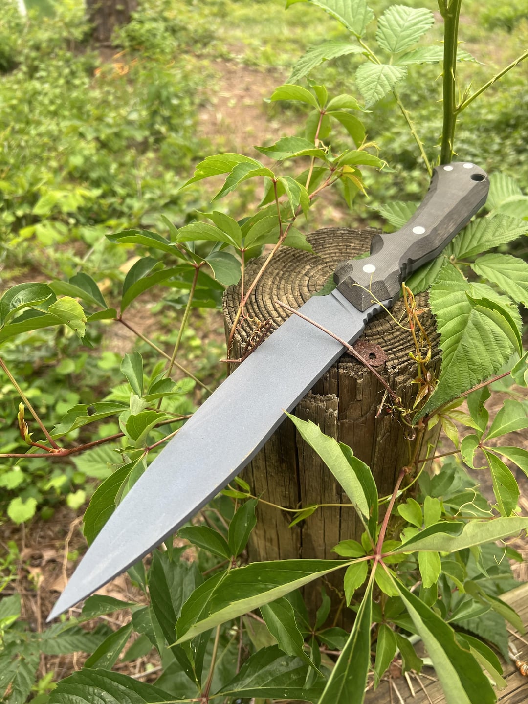 In KNIVES Sheath is made! This chopper is ready for sharpening: 8670 steel, double cerakoted, Micarta handles and Kydex Sheath. Just need to sharpen π May 9, 2024 Sheath is made! This chopper is ready for sharpening: 8670 steel, double cerakoted, Micarta handles and Kydex Sheath. Just need to sharpen πby vanezblane KnifeKnives Prev Post βDaggerβ is ready to sharpen! 8670 steel, Micarta handles pinned, Cerakote Black and Carbon Fiber style Kydex! May 9, 2024 Next Post Alright itβs ready!! Time to sharpen! Chopper is: 8670 steel, Burnt Bronze under, custom Grey over Cerakote, Micarta handles with Kydex sheath. 10-1/4β long blade. Thank you for looking. May 9, 2024 Related Posts Jedi Knights January 30, 2026 Its growing on me January 30, 2026 Herman Micro Sting, custom mirror DLC – yay or nay? January 30, 2026 1 Comment CosmicCharlie99 2 years ago I like that blade profile. Itβs almost a spear point styleEdit: after zooming in, that handle could use some finishing work. Soften those edges on the grip or it will have major hot spotsWrite A CommentYou must be logged in to post a comment.