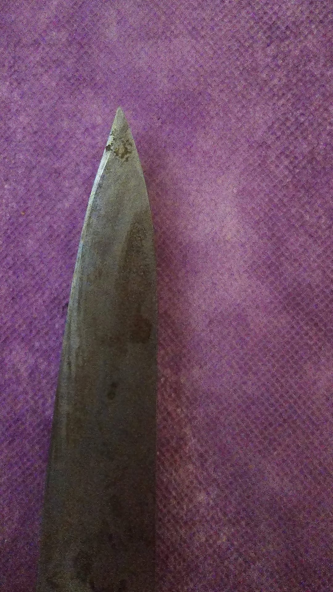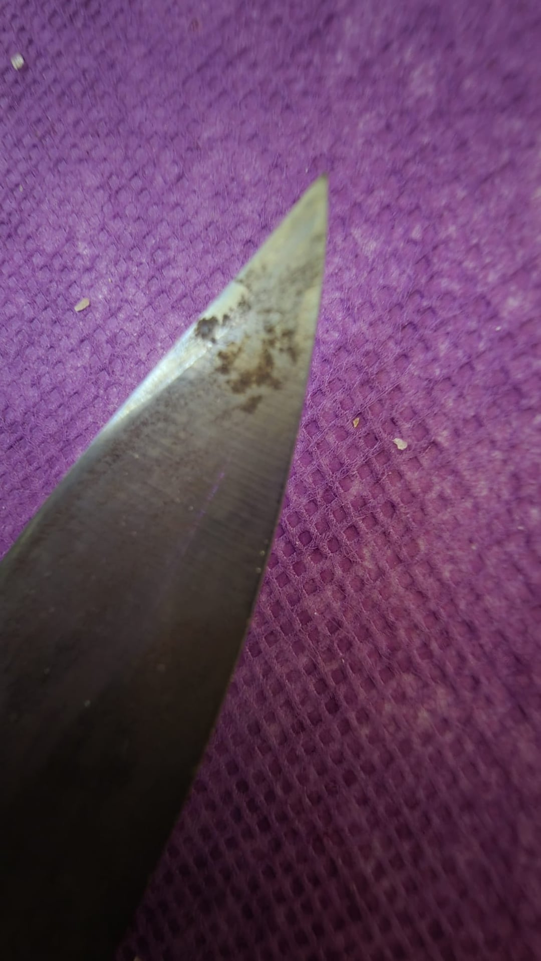 conversely, when it’s dry, apply a couple coats of hot apple cider vinegar to the blade to force a patina.