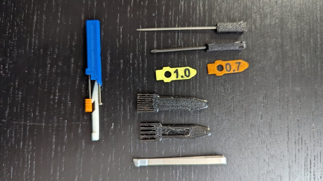 As a bonus you get 2 brushes for cleaning and oiling the Surge or whatever Leatherman you carry and a sweet little bit that holds a pin, a reset pin with handle and a glow-in-the-dark toothpick with an added hook. Also included are two spacers for slim t-shank-blades for the Surge.